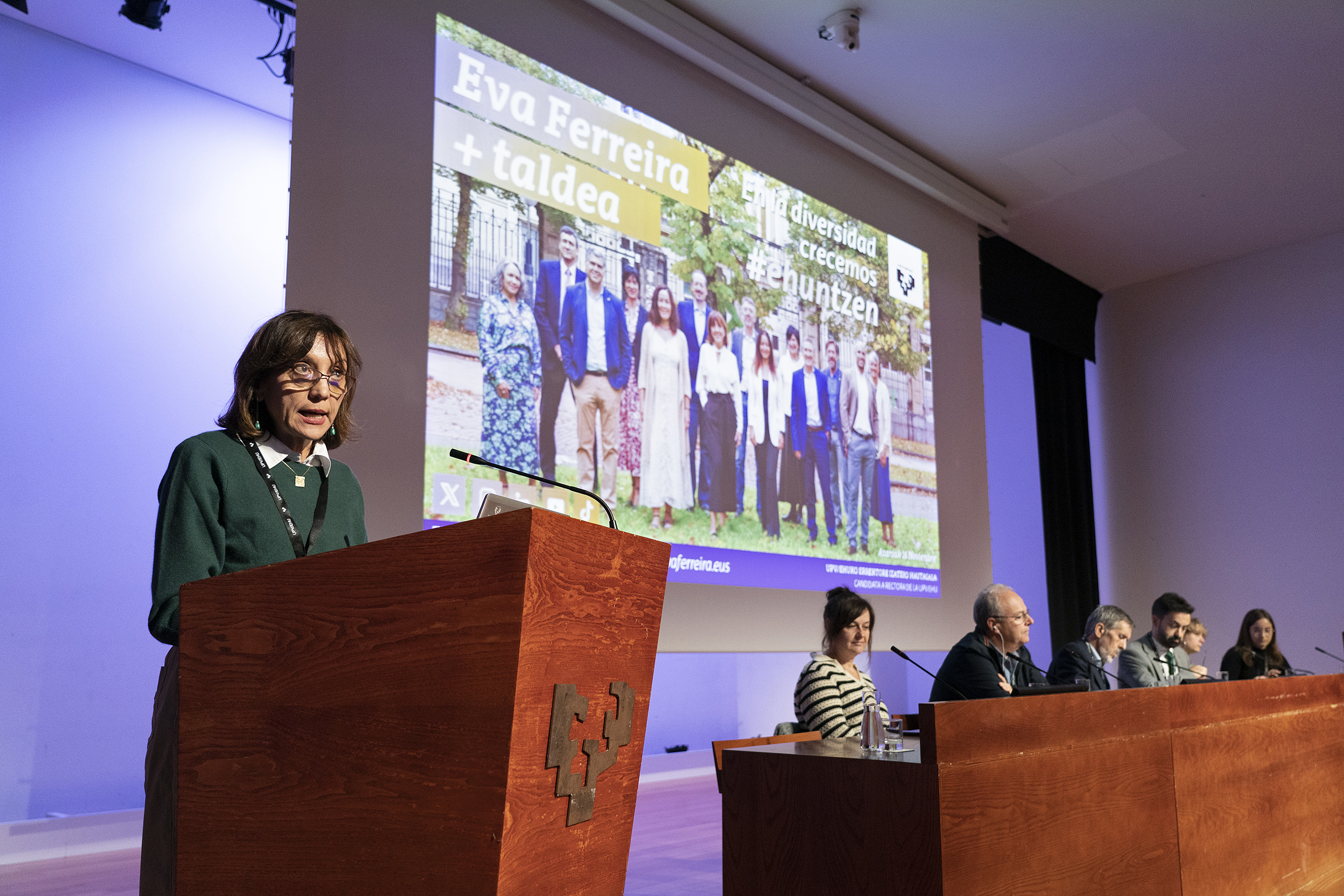 Gaur goizean Euskal Herriko Unibertsitateko Klaustroak ezohiko bilera egin du Bizkaia Aretoan, aztergaien zerrendan puntu bakarra izanik: errektore izateko hautagaiek beren programak aurkeztea. Jakina denez, bi proposamen aurkeztu dira datozen sei urteetan unibertsitatearen lema eramateko: Ekonomia Aplikatuko katedradun eta gaur egungo errektore Eva Ferreirarena eta Zuzenbidearen Filosofiako katedradun Joxerramon Bengoetxearena. Gaurko saioan bere taldekideak izan dituzte lagun hautagai batak eta besteak.