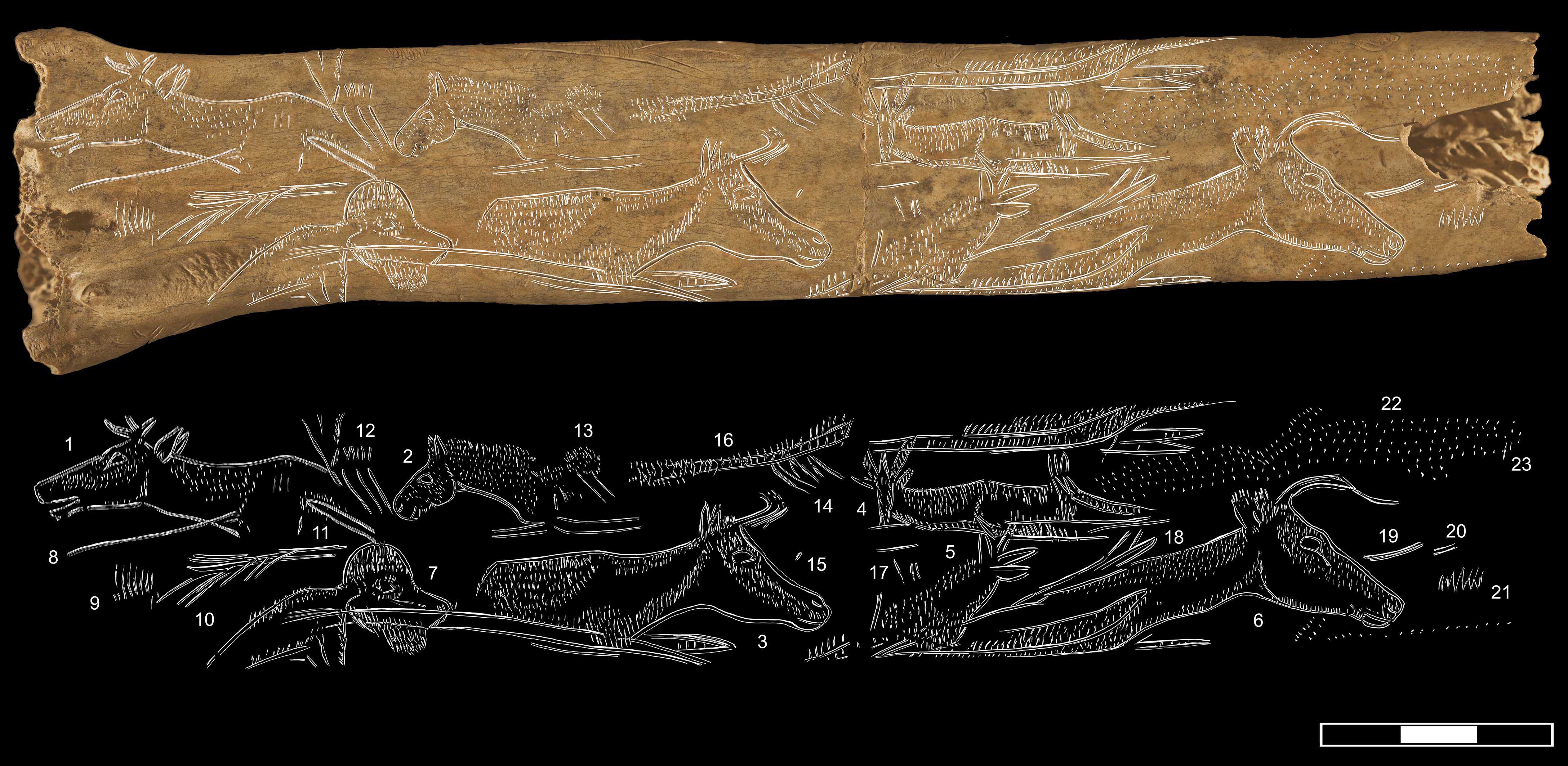 “Eskura dugun teknologia berriarekin, gure ikerketak grabatuen zehaztasun handiagoa egitea ahalbidetu du, baita orain arte argitaratu gabeko batzuk aurkitzea ere. Irudikapenek antzeko ereduari jarraitzen diote kasu guztietan. Irudien eta zeinuen ingeradak marraztu ziren lehenik, lanabes litikoa behin baino gehiagotan pasatuz ildo sakonak egiteko. Lerro laburrez eta/edo koskaz osatutako dekorazioak geroago egin ohi ziren, eta lerro horiek egiteko hezurrari buelta ematen zitzaiola antzematen da zenbait kasutan. Artistak gaitasun kognitibo handia zuen, erregulartasun bisualaren estimazio estetikoaz eta funtzio motorren lateralizazioaz gain. Gainera, grabatuak aztertu ondoren, zera ikusi dugu, Madeleine aldiko beste aztarnategi batzuen –zehazki, Pirinioetan eta Kantauri Itsasertzean kokatutakoen– antzekoa dela pieza hori tratamenduari dagokionez, batez ere grabatutako animalien tratamenduari gagozkiola; hala, berretsita geratzen da portaera tekniko eta ikonografikoak trukatu ohi zirela”, ikertzaileak adierazi duenez.