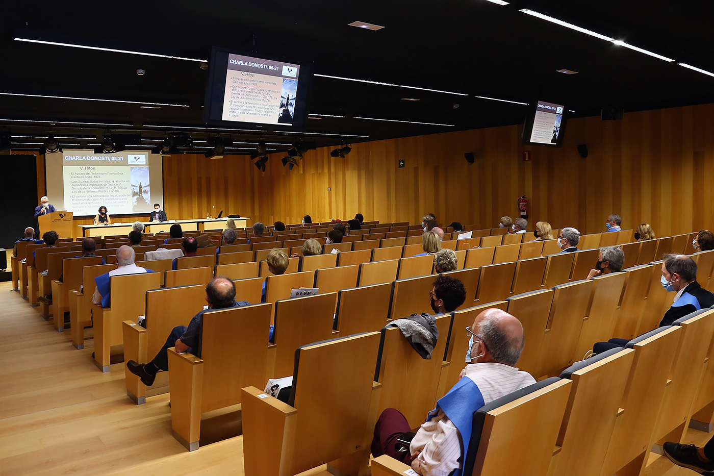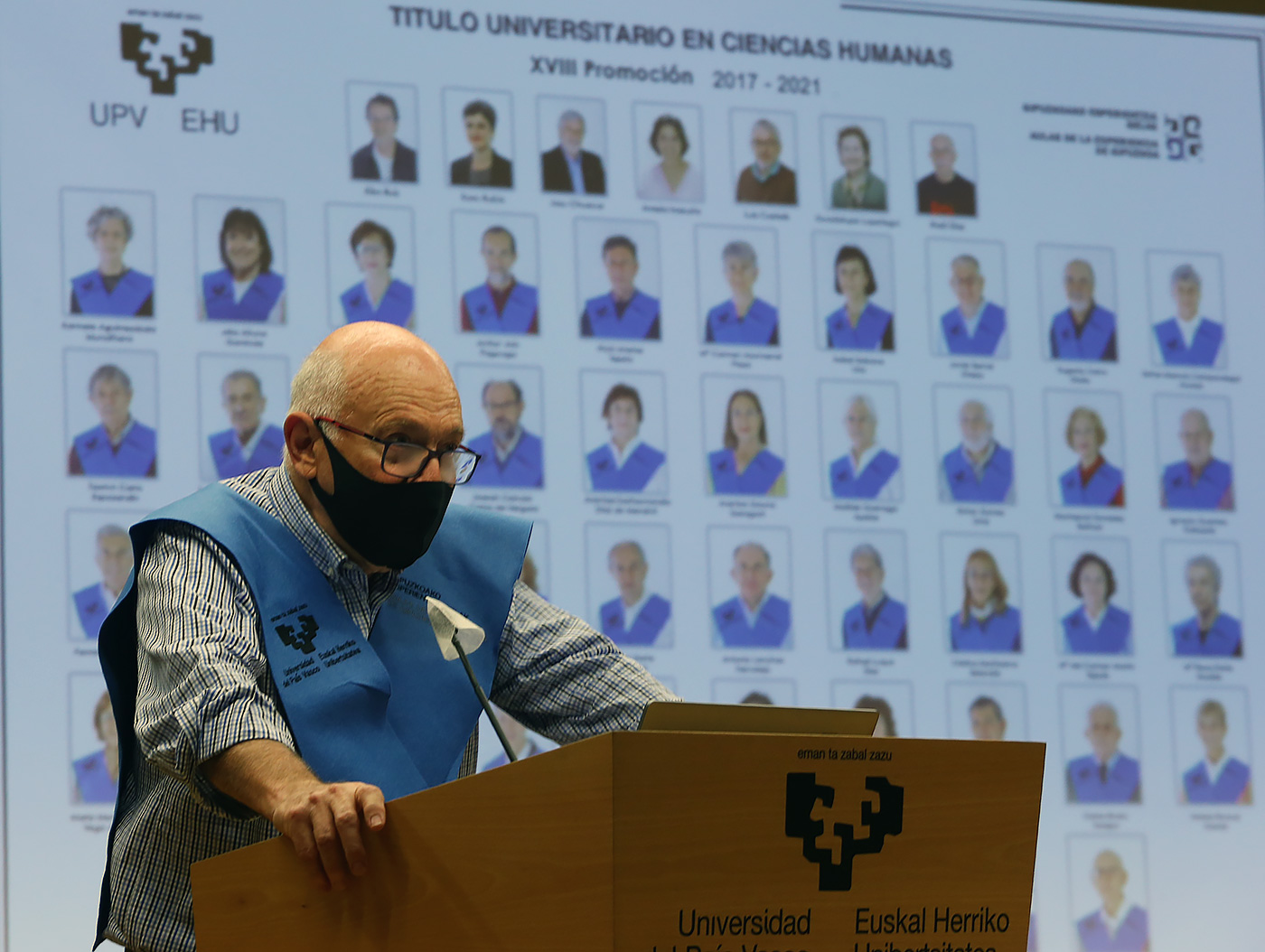 Euskal Herriko Unibertsitateko Carlos Santamaria Zentroaren auditorioan, Donostian, Esperientziaren Ikasgeletan (55 urtetik gorakoentzat) ematen den Giza Zientzietako Unibertsitate Tituluaren (2017-2021) hemeretzigarren promozioko ikasturte amaierako ekitaldia egin da. Guztira 50 ikaslek amaitu dituzte ikasketak. Gipuzkoako Campusako errektoreorde Agustin Erkizia eta Gipuzkoako Esperientziaren Ikasgeletako zuzendari Amaia Irazusta ekitaldiaren buru izan dira. Halaber, UPV/EHUko Zuzenbide Fakultateko irakasle Luis Castellesek hitzaldia eskaini du. Izenburua: ‘La transición política española (1975-1982)’. Laugarren ikasturteko ikasleen ordezkari Jesusa Taratielek eta Josemi Sarriak ekitaldian parte hartu dute ere.
