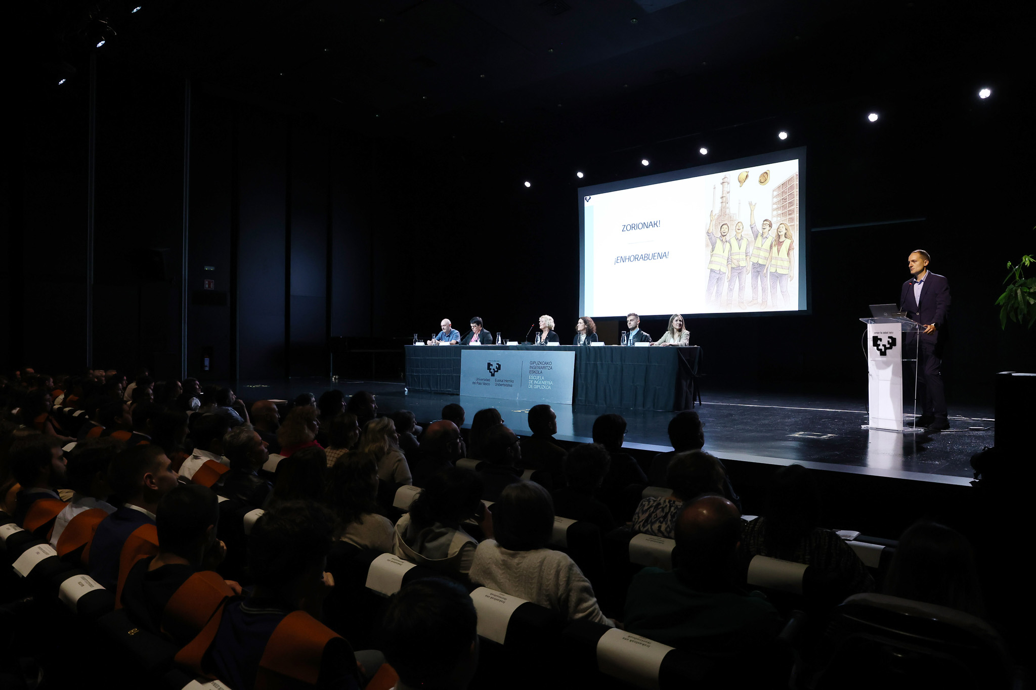 Ekitaldiari amaiera emateko, Marian Iriarte EHUko Erakunde Harremanetarako eta Kulturako errektoreordeak zorionak eman zizkien ikasleei egindako ahaleginagatik, eta "ikasten jarraitzeko eta gizarte teknologiko, jasangarri eta gizatiarrago bati laguntzeko" deia egin zien.