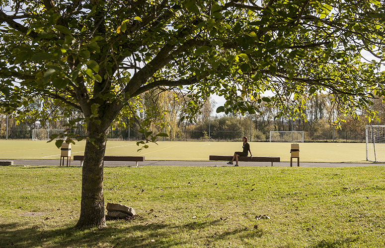 Hezkuntza eta Kirolaren fakultateko eraikinaren atzeko aldean (Lasarte atarian, 71. 01007 Gasteiz), futbol zelairanzko bidean, eremu zinez atsegina dago, egunetik egunerako zalapartatik, une laburretan besterik ez bada, ihes egiteko oso aproposa. Ping pongeko mahai bat, estilo modernoko eserlekua eta intxaurrondo bat dira lorategi eremuaren osagaiak. Eta zuhaitzaren udazken adaburuaren azpian, zendutako lankide bati landutako harrizko oroitzapena.
