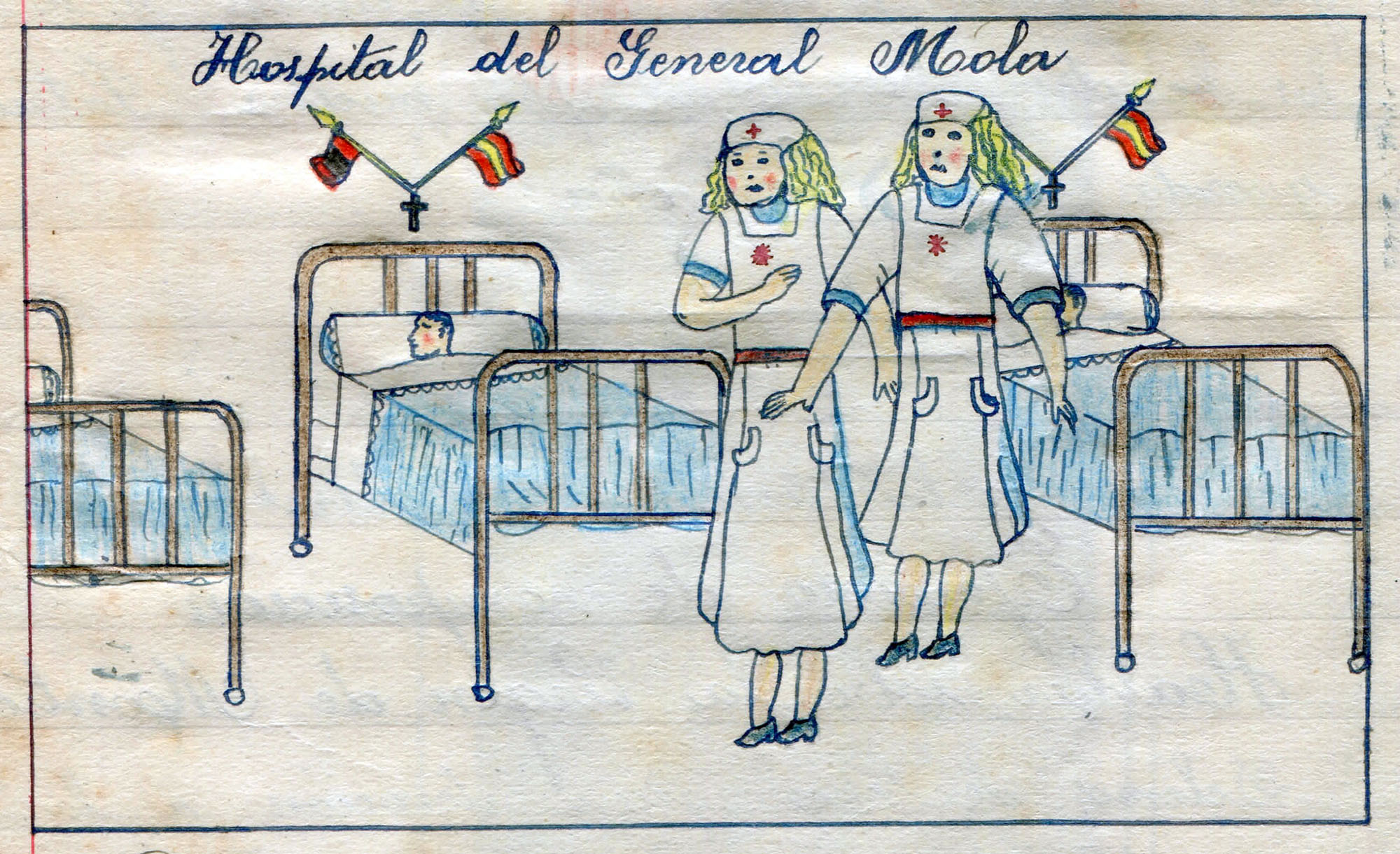 UPV/EHUko Hezkuntzaren Museoak eskaintzen duen marrazki-bilduma eskola-koadernoen funtsetik dator. 1.200 koaderno baino gehiagok osatzen dute, gehienak Euskal Herrikoak, eta bertan haurrek Espainiako Gerra Zibilari buruz duten ikuspegia jasotzen da, kanpainako ospitaleak, gudu-zelaiak eta frankisten aldeko desfileak islatuta.