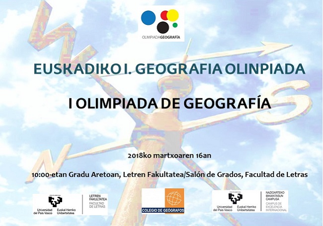 Ostiralarekin, martxoak 16, 10.00etan hasita, Universidad del País Vasco/Euskal Herriko Unibertsitatearen Letren Fakultateko gradu aretoan burutuko da Euskadiko I. Geografia Olinpiada, IX. Geografia Olinpiadaren fase autonomikoa, geografoen elkargoak antolatuta, UPV/EHUren Geografia, Historiaurrea eta Arkeologia saileko geografiako irakasleek lagun.