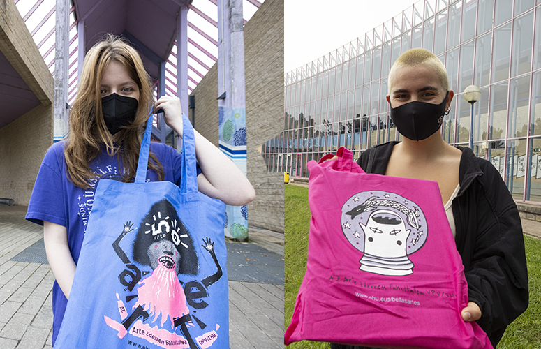 Aurrera doa matrikula. Arte Ederren Fakultatean, ohitura denez, ikasle berriei poltsa eta oihalezko kamiseta oparitzen dizkiete. Aurten bi modelo daude, ex aequo irabazi baitzuten ikastegiak antolatutako ideien lehiaketa. Poltsa urdinaren egilea Julián Camilo Briceño Sepúlveda da, Arte Garaikide Teknologiko eta Performatiboa Masterreko ikaslea, eta poltsa arrosarena, María do Carmen Ayala Lago, 2020-2021ean Sorkuntza eta Diseinuko graduko bigarren maila egin duena.