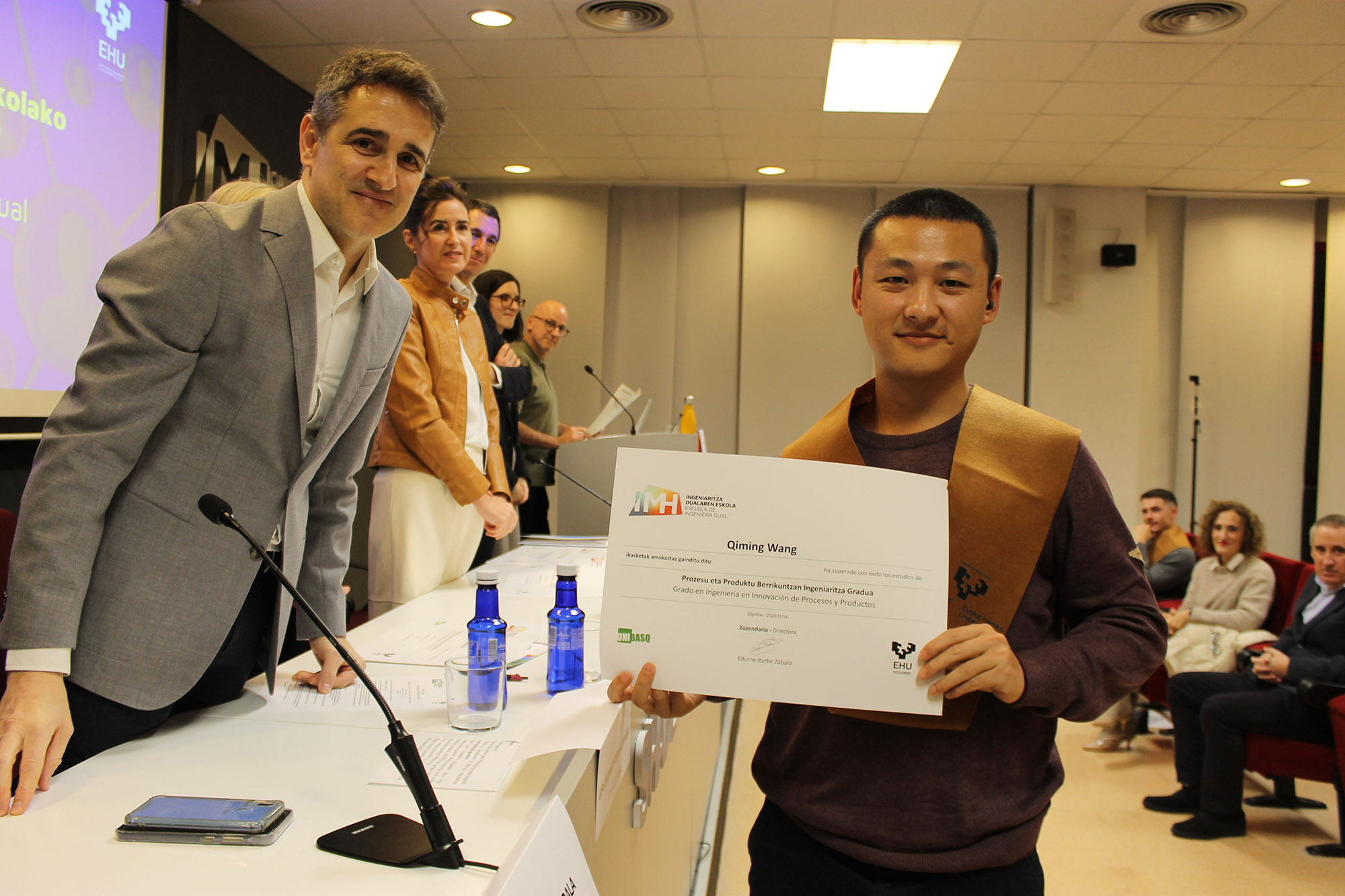 IMH Campuseko Ingeniaritza Dualaren Eskolako diplomak banatu ziren eta aitortza egin zien Prozesu eta Produktu Berrikuntzan Ingeniaritza Graduko eta Digital Manufaturing Unibertsite Masterreko ikasleei. Horrez gain, aipamen berezia izan zuten (espediente onenak): Lucia Gandiaga (Berrikuntzako Ingeniaritza Gradua) eta Xabier Caballero (Fabrikazko Digitalaren Masterra). Ekitaldian Lucía Gandiagak Formazio Dualaren Ereduari buruzko bere bizipenak eta eskertza adierazi zituen, ikasle ohien ordezkari gisa. Bestalde, Euskal instituzioetako ordezkariek eta Edurne Iturbe Elgoibarko Ingeniaritza Dualaren Eskolako zuzendariak zorion mezuak eman zizkien titulatuei: Ainhoa Berasaluze EHUko Graduondoko eta Etengabeko Ikaskuntzako errektoreordeak; Sara Urionabarrenetxea Eusko Jaurlaritzako Unibertsitate Antolamendu eta Plangintzaren zuzendariak, Jon Gurrutxaga Gipuzkoako Foru Aldundiko Berrikuntzako Zuzendariak, Ion Zubiaurre, Elgoibarko alkate ordeak eta Josu Riezu, AFM Clusterreko pertsonen arloko zuzendariak. Ekitaldia Elgoibarko Brilet talde akustikoaren emanaldiarekin amaitu zen.