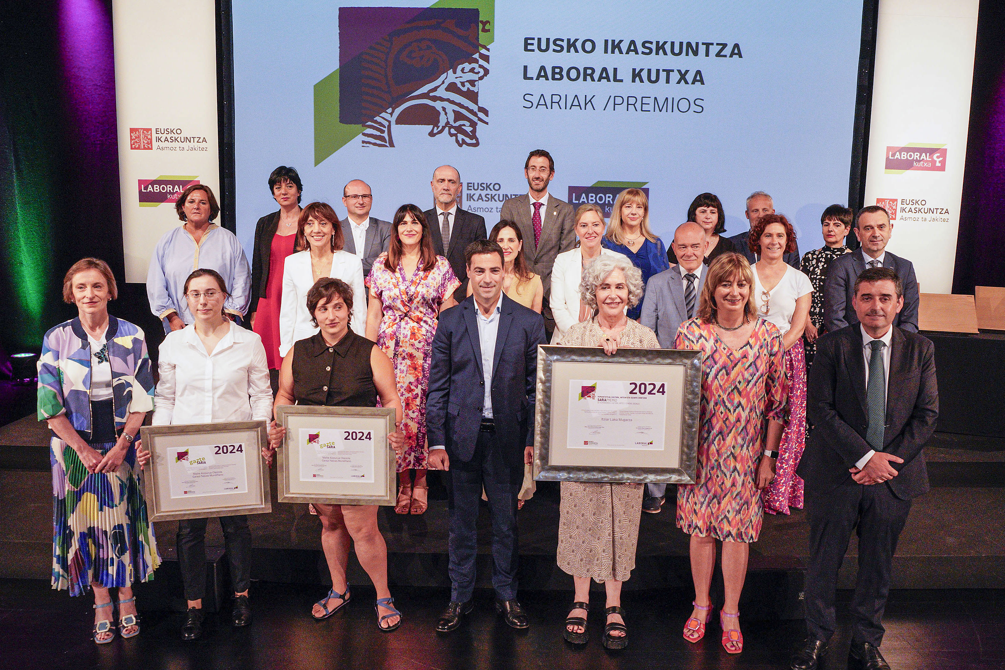 Bilboko Azkuna Zentroan izan da gaur Eusko Ikaskuntza– LABORAL Kutxa Sariak emateko ekitaldia. Sariak 1995etik Humanitateak, Kultura, Arteak eta Gizarte Zientzietako curriculum onenak aintzatesten ditu, eta 2019tik aurrera gazteek aurkeztutako sorkuntza- edo ikerketa-proiektuak ere bai. 2024ko edizioan, Itziar Laka UPV/EHUko hizkuntza-ikertzailea eta Maite Aizpurua eta Garazi Navas sortzaileak saritu dituzte.
