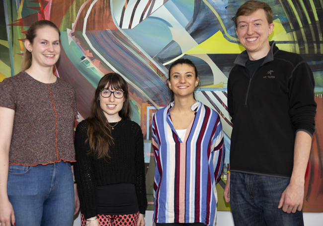 Irati Rodrigo eta beste hiru ikertzaile gazteak UPV/EHUko Zientzia eta Teknologia Fakultatean daude orain, UPV/EHUko MIMASPEC ikerketa taldeak aldez aurretik garatutako ekipoetan tratamendua aplikatzeko, horietan ari baita garatzen bere tesia Rodrigo.