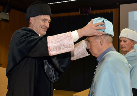 Universidad del País Vasco / Euskal Herriko Unibertsitateak Víctor Gómez Pin Bartzelonako Unibertsitate Autonomoko Filosofiako katedradun emeritua honoris causa doktore izendatzeko ekitaldia egin du gaur, ekainaren 12an (ostirala), Carlos Santamaria Zentroko auditoriumean. UPV/EHUko errektore Iñaki Goirizelaia izan da ekitaldiko burua, eta Eusko Jaurlaritzako Zientzia Politikako zuzendari Amaia Esquisabel ere bertan izan da.