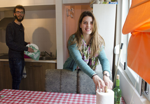 Oihane Pildain Arrasatekoa (Gipuzkoa) da, gizarte-lanean titulatua eta, gaur egun, UPV/EHUko Hegoa Institutuak ematen duen Globalizazioa eta Garapena Masterreko ikaslea. Pablo Domínguez Sevillakoa (Andaluzia) da, soziologia eta politika-zientziak ikasi ditu, eta orain Ikerketa Ereduak eta Arloak Gizarte Zientzietan Unibertsitate Masterra ari da ikasten Leioan. Biek, hirugarren lagun batekin, Otxarkoagako etxebizitzetako bat konpartitzen dute Gazte Solidarioentzako Bilboko Udal Etxebizitzak programan.