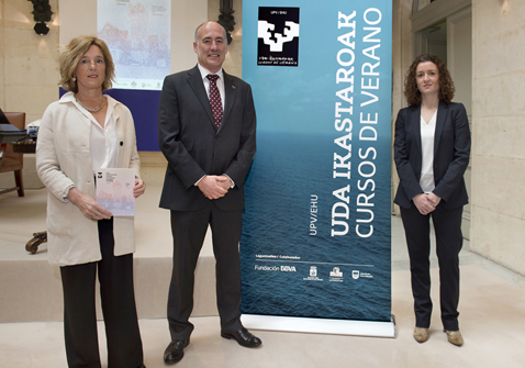 UPV/EHUko XXXV. Uda Ikastaroak aurkeztu dira BBVA Fundazioaren egoitzan, bertan Iñaki Goirizelaia, UPV/EHUko errektorea, Carmen Agoués, UPV/EHUko Uda Ikastaroen zuzendaria, eta Laura Poderoso, BBVA Fundazioaren zuzendariordea bertan zirela. Azken erakunde hori ikastaroen erakunde laguntzaile nagusia da.