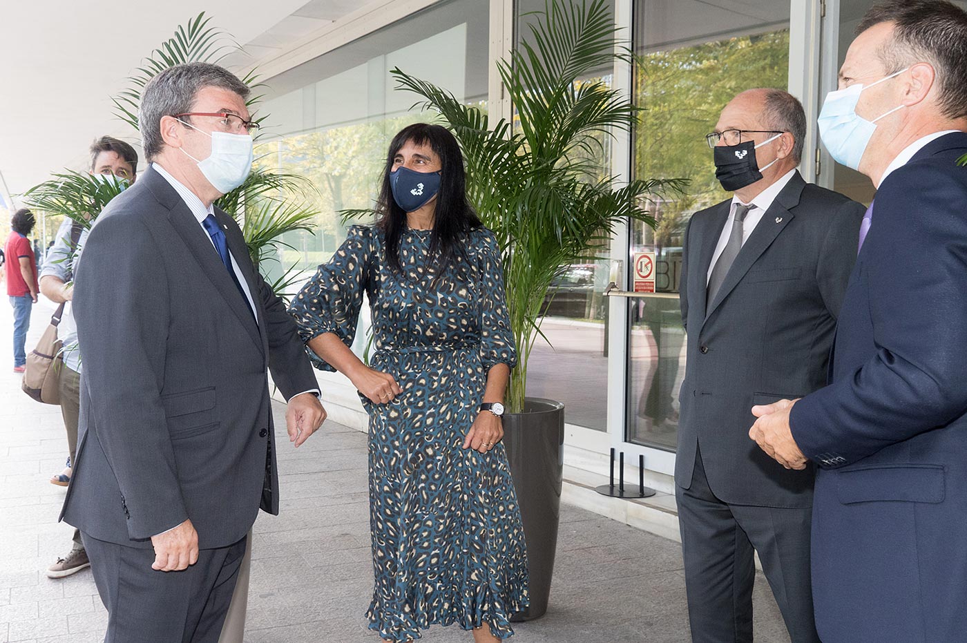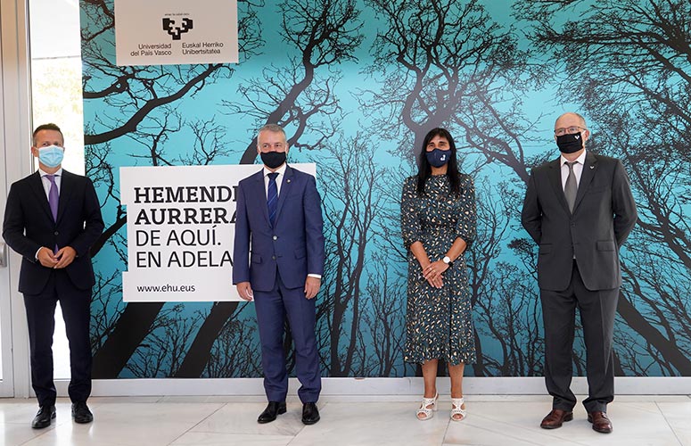 Pedro Iriondo, Nekane Balluerka, Jokin Bildarratz eta lehendakaria. Argazkia: Mitxi / UPV/EHU -