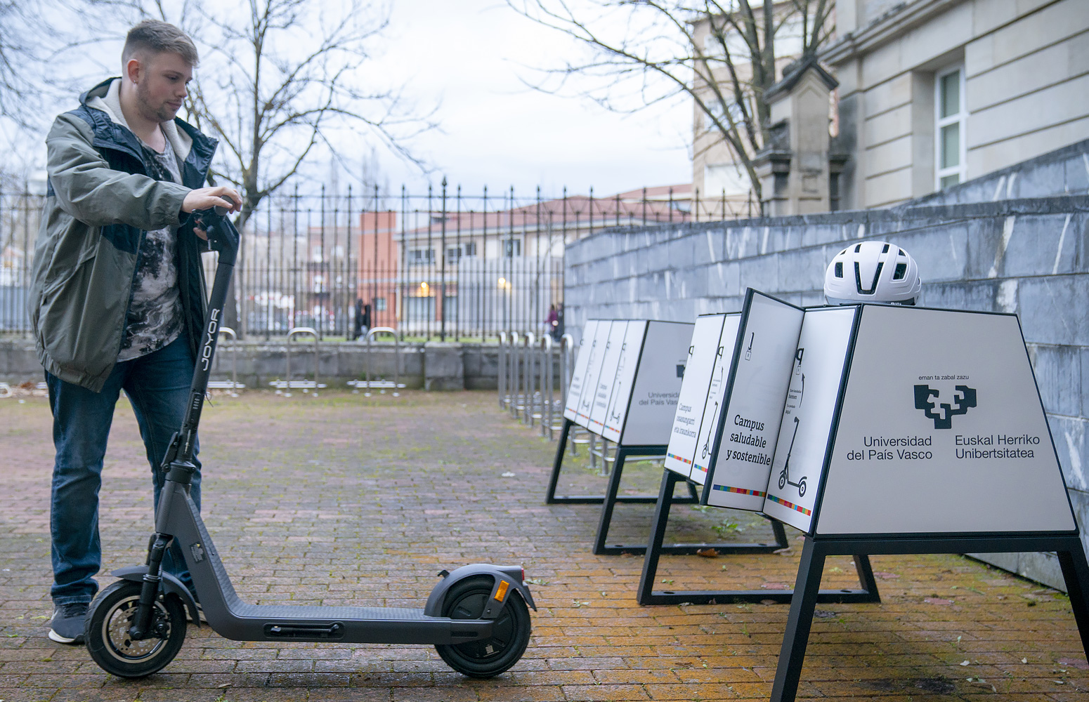 Arabako Campuseko Errektoreordetzak patinetetarako aparkalekua jarri du Elurreta eraikineko sarreran (Nieves Cano, 33. 01006 Vitoria-Gasteiz). Instalazio berri honek beste ekintza batzuekin egiten du bat, esate baterako, espazio berean bizikletak konpontzeko zutabe bat jartzea, helburua baita mugikortasun iraunkorra sustatzea unibertsitate eremu honetara arte eta bertatik abiatuta.