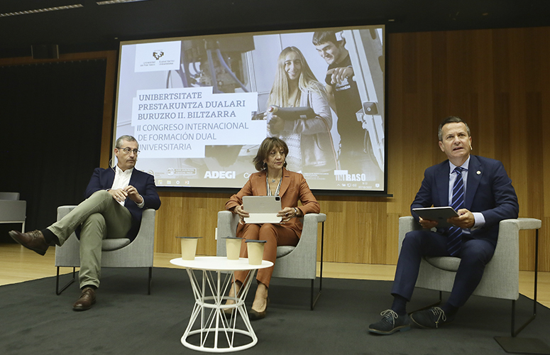 Euskal Herriko Unibertsitateko Carlos Santamaría Zentroko auditorioan inauguratu da Prestakuntza Dualari buruzko Nazioarteko bigarren Biltzarra. ‘Unibertsitateko Prestakuntza Duala Europako Unibertsitate Eremuan’ Nazioarteko Kongresua’ izenburupean. Nazioarteko topaketa horretan 13 autonomia-erkidegotako 150 parte-hartzaile baino gehiago bildu dira, eta gero eta finkatuagoa eta zabalduagoa den irakaskuntza-eredu horri buruz hausnartu eta eztabaidatuko dute jardunaldi honetan.