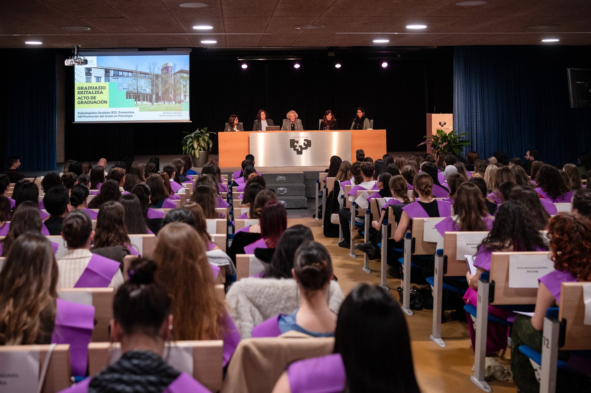 Euskal Herriko Unibertsitateko (EHU) Ignacio Mª Barriola Zentroko Auditorioan Psikologiako XIII. promozioko 230 ikasle graduatu ziren. Marian Iriarte Ormazabal EHUko Erakunde Harremanetarako eta Kulturako errektoreordea eta Eneritz Gómez Psikologia Fakultateko dekanoa izan ziren ekitaldiko buru. Hizlaria Amaia Elicegui Gómez psikologo psikoterapeuta izan zen. Ekitaldian, graduatuen XIII. promozioari buruzko bideo bat proiektatu zen eta sariak banatu ziren: Espediente onena eta Gradu Amaierako Lan Onena. Jonxa eta Amaiaren musika emanaldiak amaiera bikaina eman zion ekitaldiari.