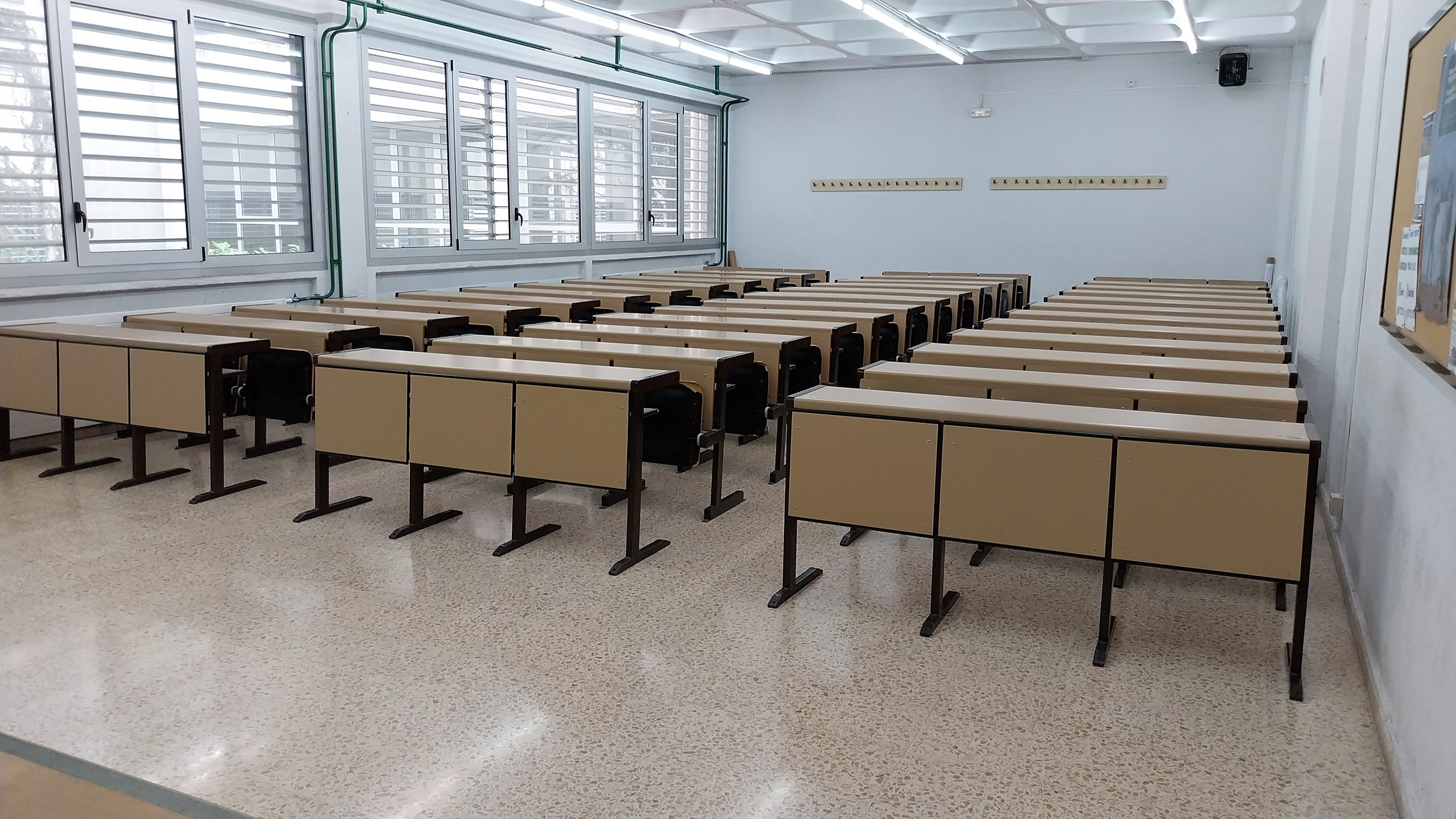 Bai, argazkiak UPV/EHUren ikastegiak osatzen dituzten ehunka ikasgeletako bat bakarrik irudikatzen du. Kasu honetan, Zientzia eta Teknologia Fakultateko ikasgela bat. Egia esateko, hasiera batean ez du interes handirik sortzen Unibertsitate honetako txoko horrek.