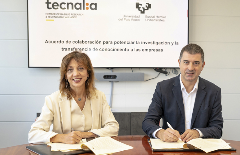 Bilbo, 2022ko uztailaren 28a. Eva Ferreira Euskal Herriko Unibertsitateko (UPV/EHU) errektoreak eta Jesús Valero TECNALIAko zuzendari nagusiak berretsi egin dute duela lau urte bi erakundeek sinatu zuten akordioa, oinarri dena Euskadiko ekoizpen zientifikoan nagusi diren bi erakundeek batera egiten duten jarduera guztiarentzat. Hain zuzen ere, INNOBASQUE Berrikuntzaren Euskal Agentziak berriki argitaratu duen I+G jarduerari buruzko 2022ko Txostenaren arabera, UPV/EHU eta TECNALIA “euskal I+G+b arloko bi erakunde nagusiak” dira.