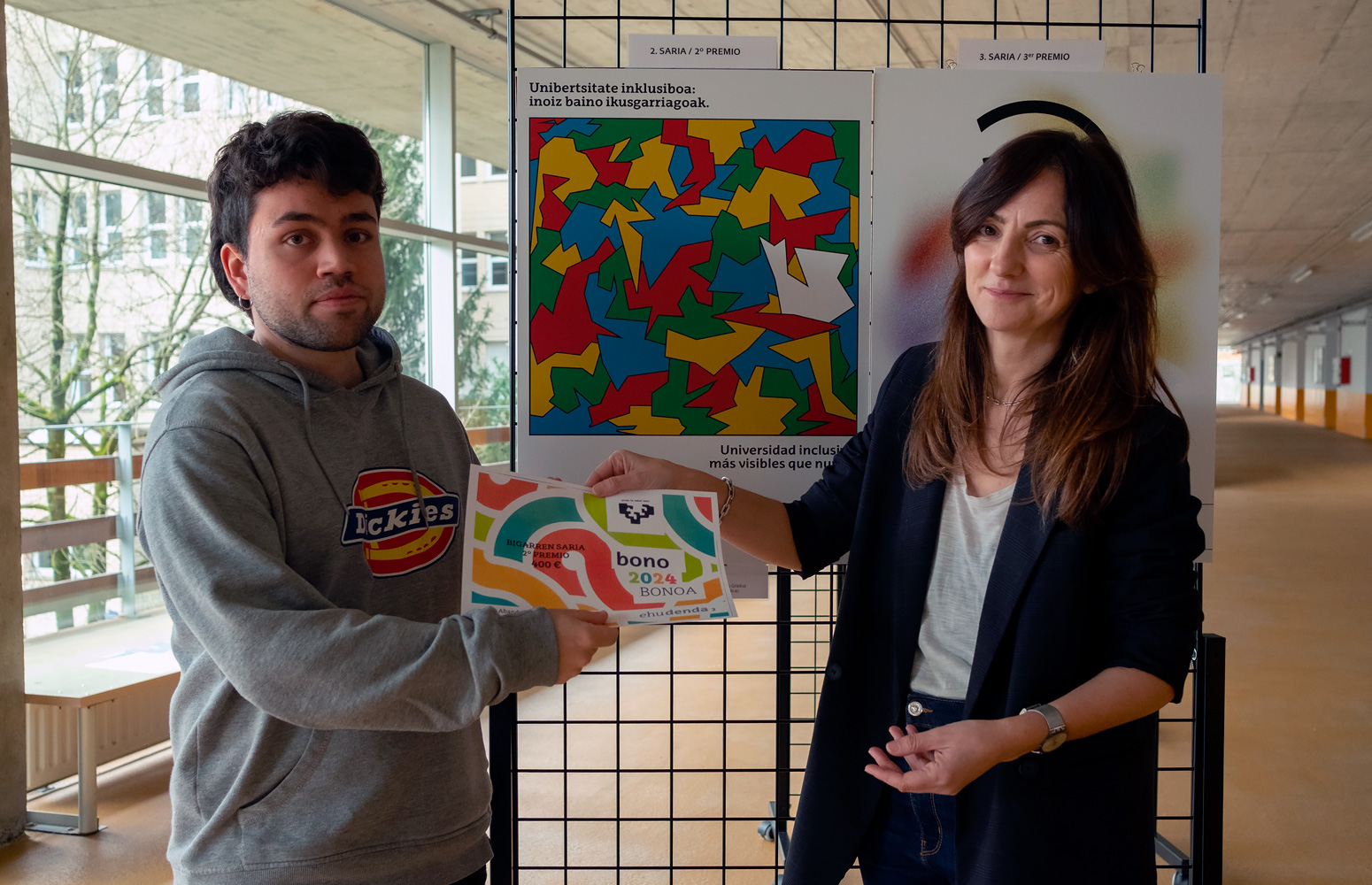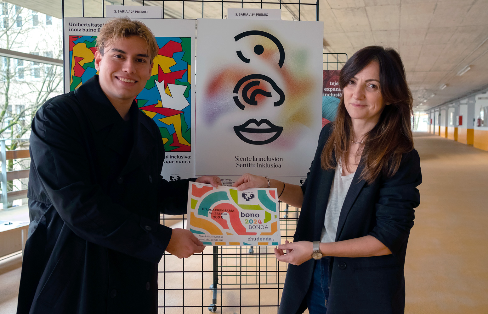 Unibertsitate Inklusiboari buruzko Kartel Lehiaketaren seigarren edizioko sariak banatu ditu Universidad del País Vasco/Euskal Herriko Unibertsitateko Desgaitasunak dituzten Pertsonentzako Zerbitzuak. Iñaki Morlán Santa Catalinak, Sorkuntza eta Diseinuko Graduko ikasleak, jaso du lehenengo saria, ‘Egin daiteke’ izeneko lanarengatik. Bigarren saria Javier Navarro de Almeidak irabazi du, Publizitateko eta Harreman Publikoetako Graduko ikasleak, ‘Visibles’ lanarengatik. Hirugarren saria, berriz, Juan Daniel Orozco Gamboarentzat izan da, Arkitekturaren Oinarrietako Graduko ikaslearentzat, ‘Siente la inclusión’ lanarengatik.