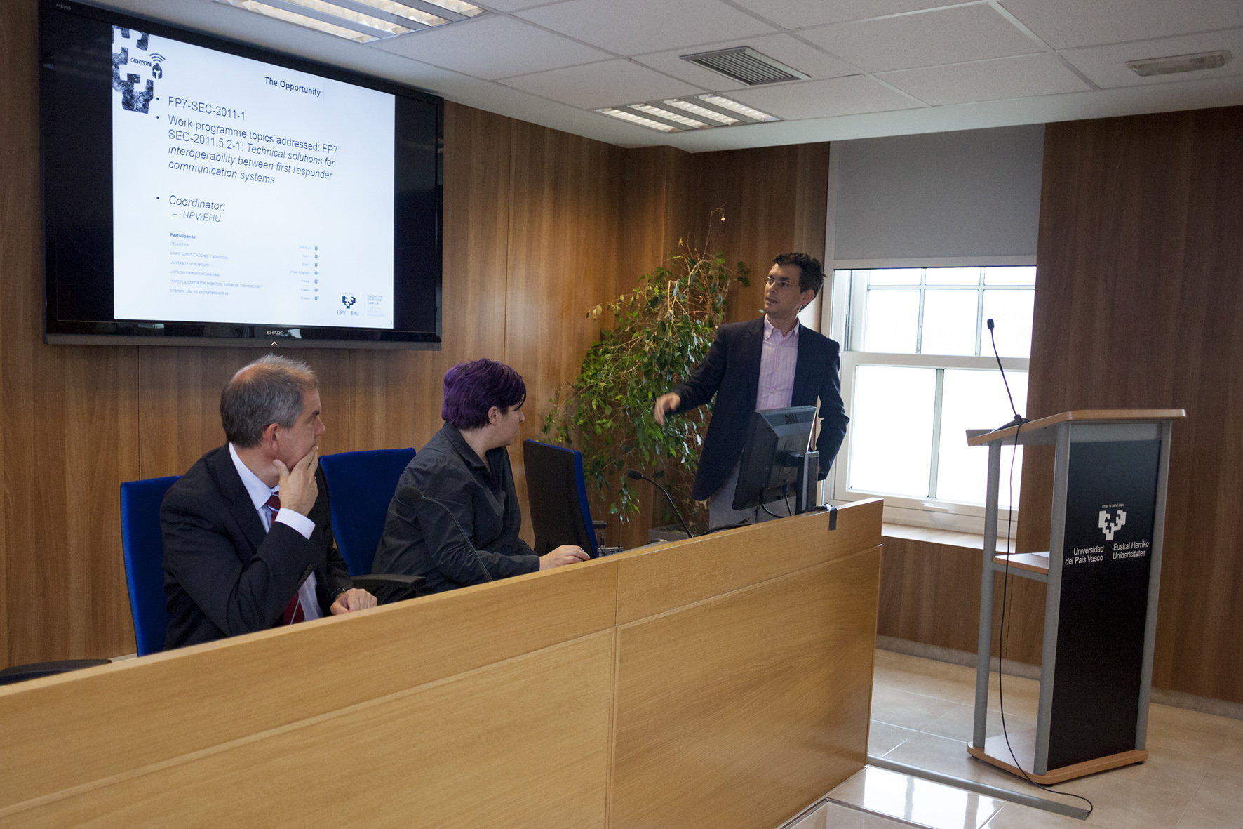 Fidel Liberal GERYON proiektuko arduradunak argitu zuen belaunaldi berriko larrialdiko komunikazioen bilakaerari buruzko lanean dihardutela. UPV/EHUk gidatutako proposamen honek komunikazio komertzialak eta larrialdikoak banatzen dituen zuloa berdindu nahi du, eta era horretan Internetera sartu eta larrialdiko argazki eta bideoak bidali ahal izateko multimedia terminalak, lokalizazio sistemak eta haren gaineko komunikazio modu berriak garatzeko gaitasuna eskuragarri egin.