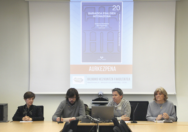 Euskal Herriko Unibertsitateko EUDIA- Euskararen bariazioa aztertzeko ikerketa taldeak ”Bariazioa Esaldien Intonazioan” ikerketa argitaratu du, non zazpi probintzietako 138 gazteren oinarrizko esaldien intonazioa aztertzen duen. Ikertzaileek 18-27 urte bitarteko emakume eta gizonen esaldiak grabatu zituzten, eta esaldi guztiak (944) transkribatu, etiketatu, aztertu, eta mapa geo-linguistikoa ere egin zuten. Gaur, lan hori honako hauek aurkeztu dute: Jon Zarate, UPV/EHUko Euskararen eta Etengabeko Prestakuntzaren arloko errektoreordea, Gurutze Ezkurdia, Bilboko Hezkuntza Fakultateko dekanoa, eta Aintzane Etxebarria, eta Asier Romero, EUDIA ikerketa-taldekideak.