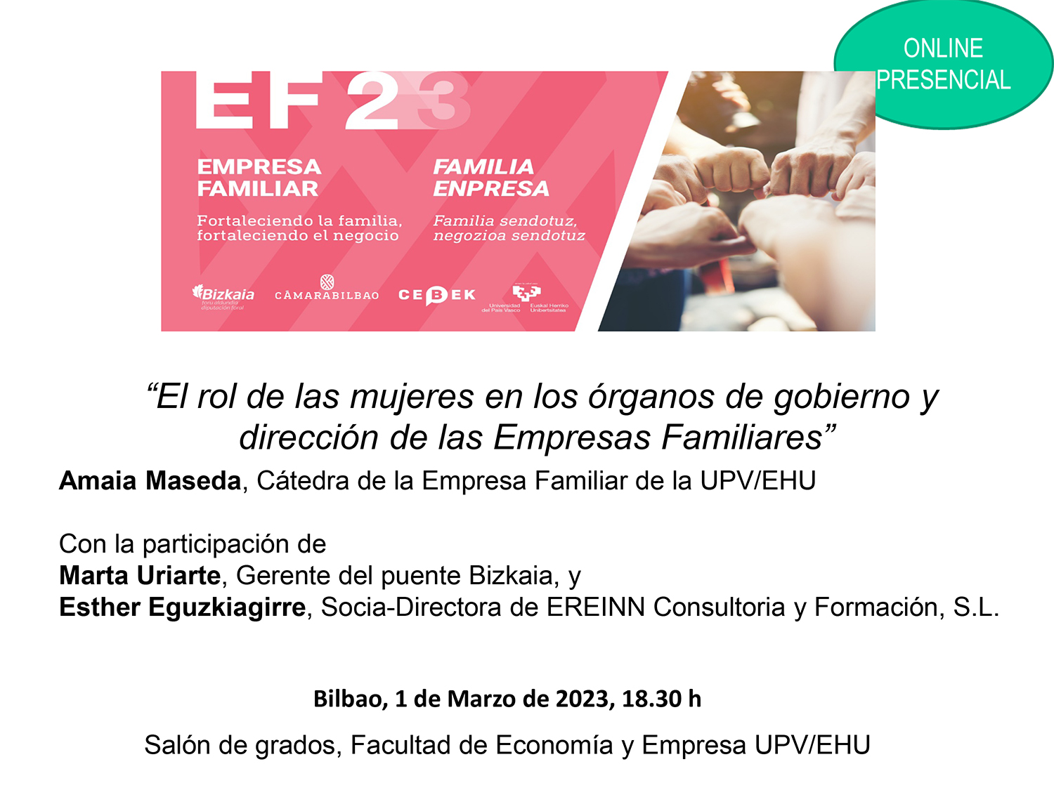 - Ponente: Amaia Maseda, Cátedra de la Empresa Familiar de la UPV/EHU