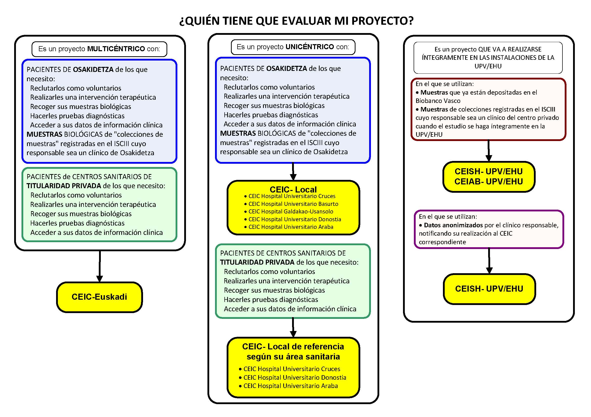 - Acuerdo CEIC-E - CEISH sobre evaluación de proyectos multicéntricos, unicéntricos, o proyectos realizados íntegramente en instalaciones de la UPV/EHU.