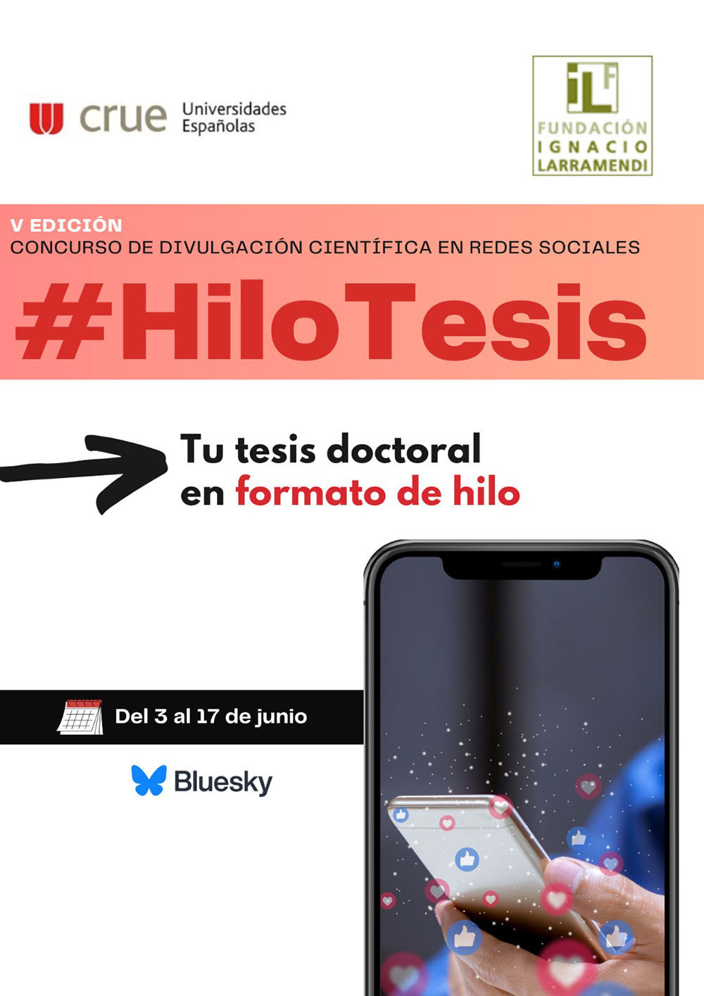 Doktorego ikasleen artean dibulgazio jarduera sustatzeko eta haren ikerketa emaitzak gizarteari hurbiltzeko, Espainiako Unibertsitateetako Errektoreen Konferentziako (CRUE) Dibulgazio eta Kultura Zientifikoko Sareak (RedDivulga), Ignacio Larramendi Fundazioarekin batera, "#HiloTesis: zure doktorego tesia sare sozialetan" lehiaketaren V. edizioaren deialdia proposatu du.