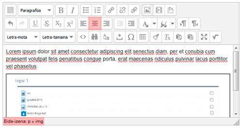 Lerrokatze mota hori egokia izan daiteke irudi txiki baterako. Irudia handiagoa denean, hobe izango da bi paragrafoen artean kokatzea, erdialderantz justifikatuta.