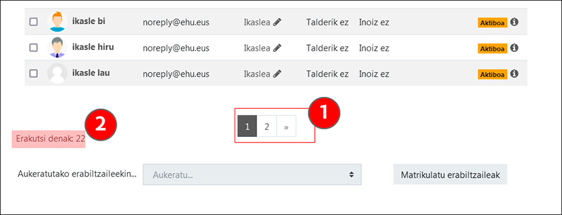 - Ikastaroan matrikulatutako erabiltzaileen zerrenda ikusi
