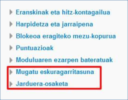- Mugatu eskuragarritasuna: baliabide edo jarduera batean izandako osatze mailaren arabera, baliabide edo jarduera berri batera sarrera mugatu.