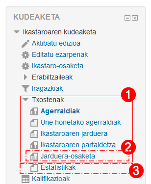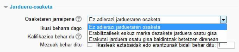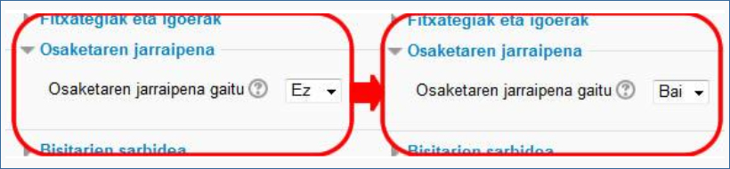 - “Jarduera-osaketa” aukera azaltzeko aurretik ikastaroko ezarpenetan aktibatu behar da.