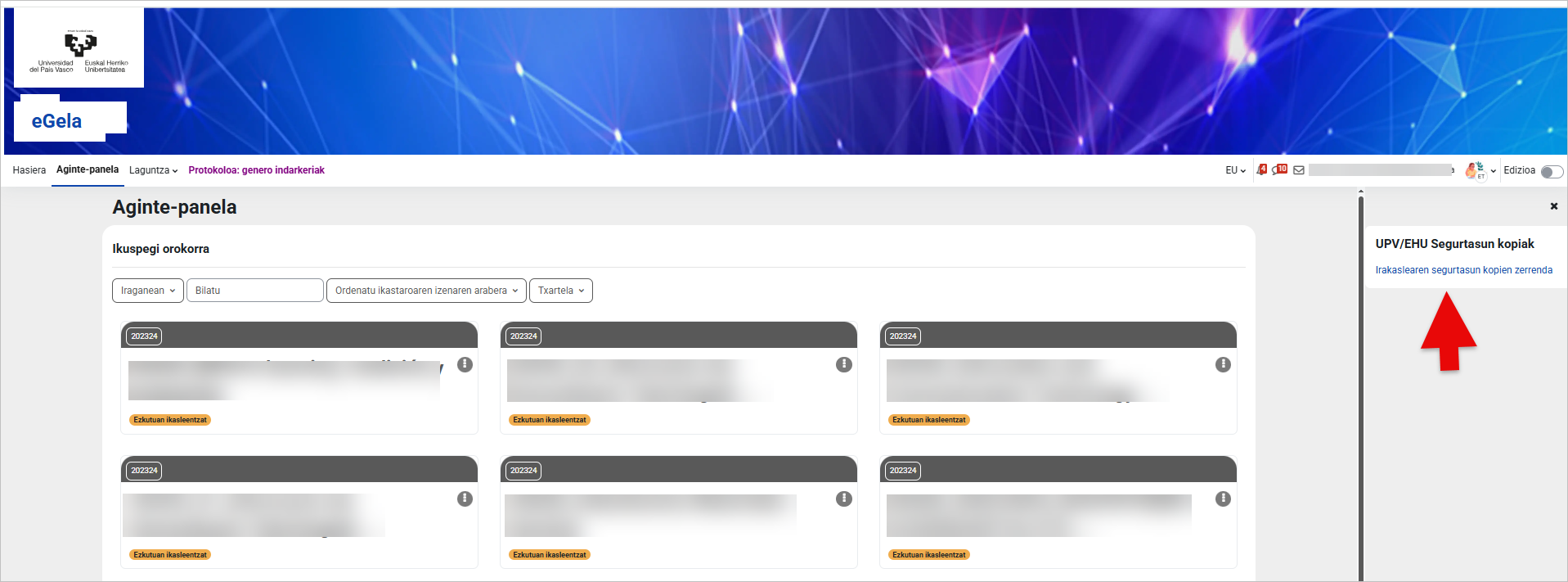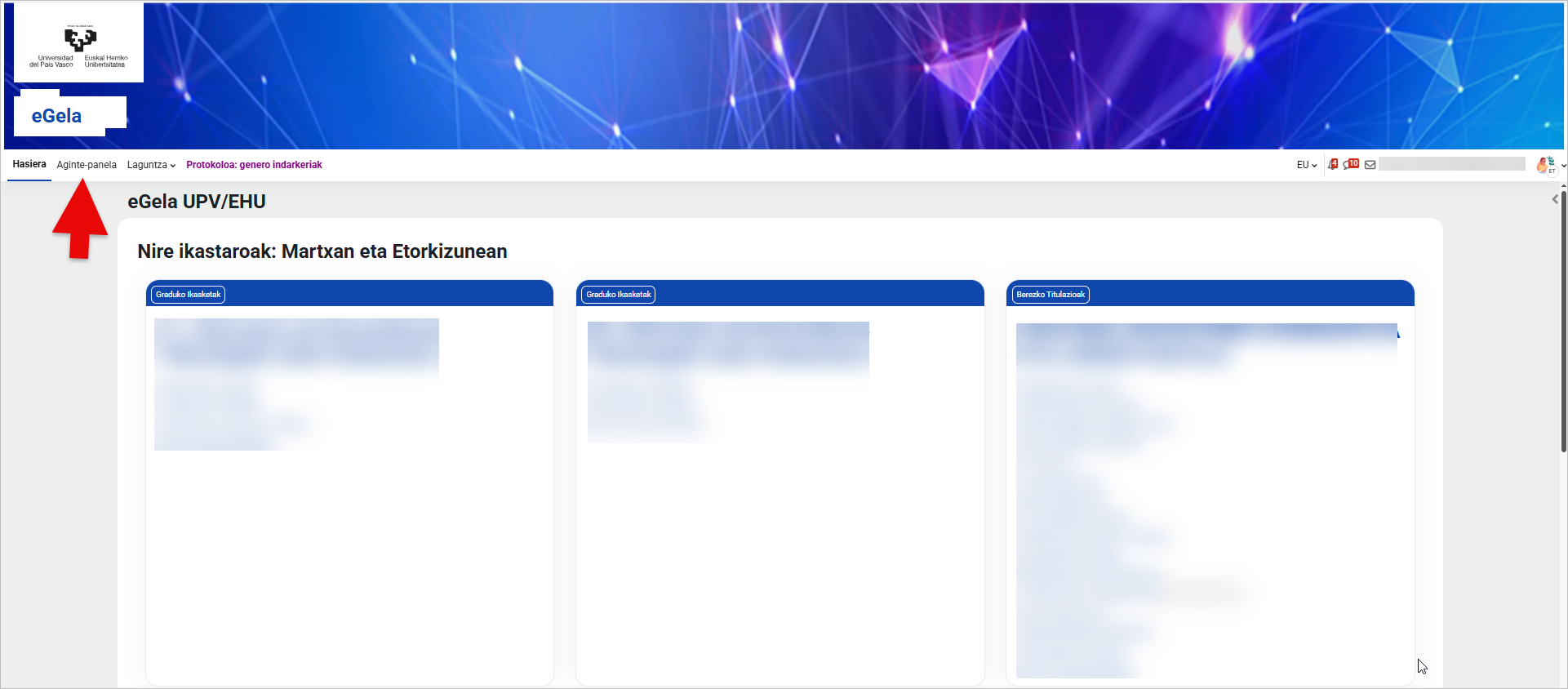 eGelan sartu eta joan “Aginte-panela” atalera.
