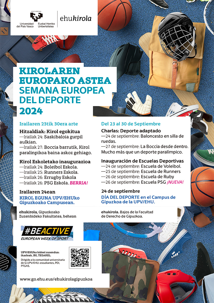 Aurten ere, Gipuzkoako Campusak bat egingo du Europako Kirol Astearekin, EHUn jarduera fisikoa eta kirola sustatzeko kanpaina martxan jarriz, Unibertsitateko Kideei zuzendua (EHUko ikasleak, IRI, TEKAZEL) irailaren 23an, 24an eta urriaren 1ean programatutako jarduerekin: