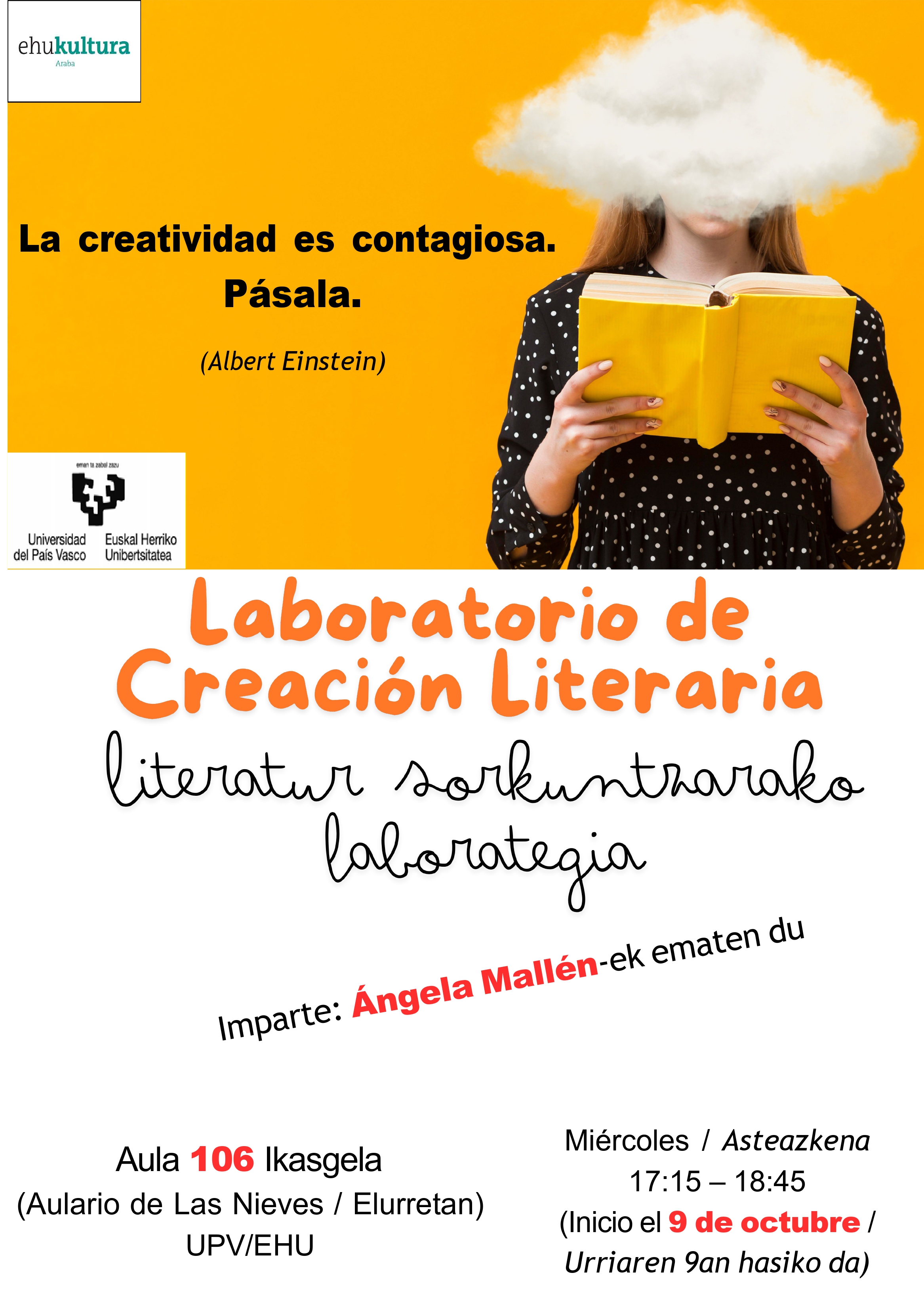 Arabako campuseko LITERATUR SORKUNTZAKO LABORATEGIAren bigarren seihilekoa urriaren 9an hasiko da, 17:15ean, Las Nieves kaleko 106. gelan.