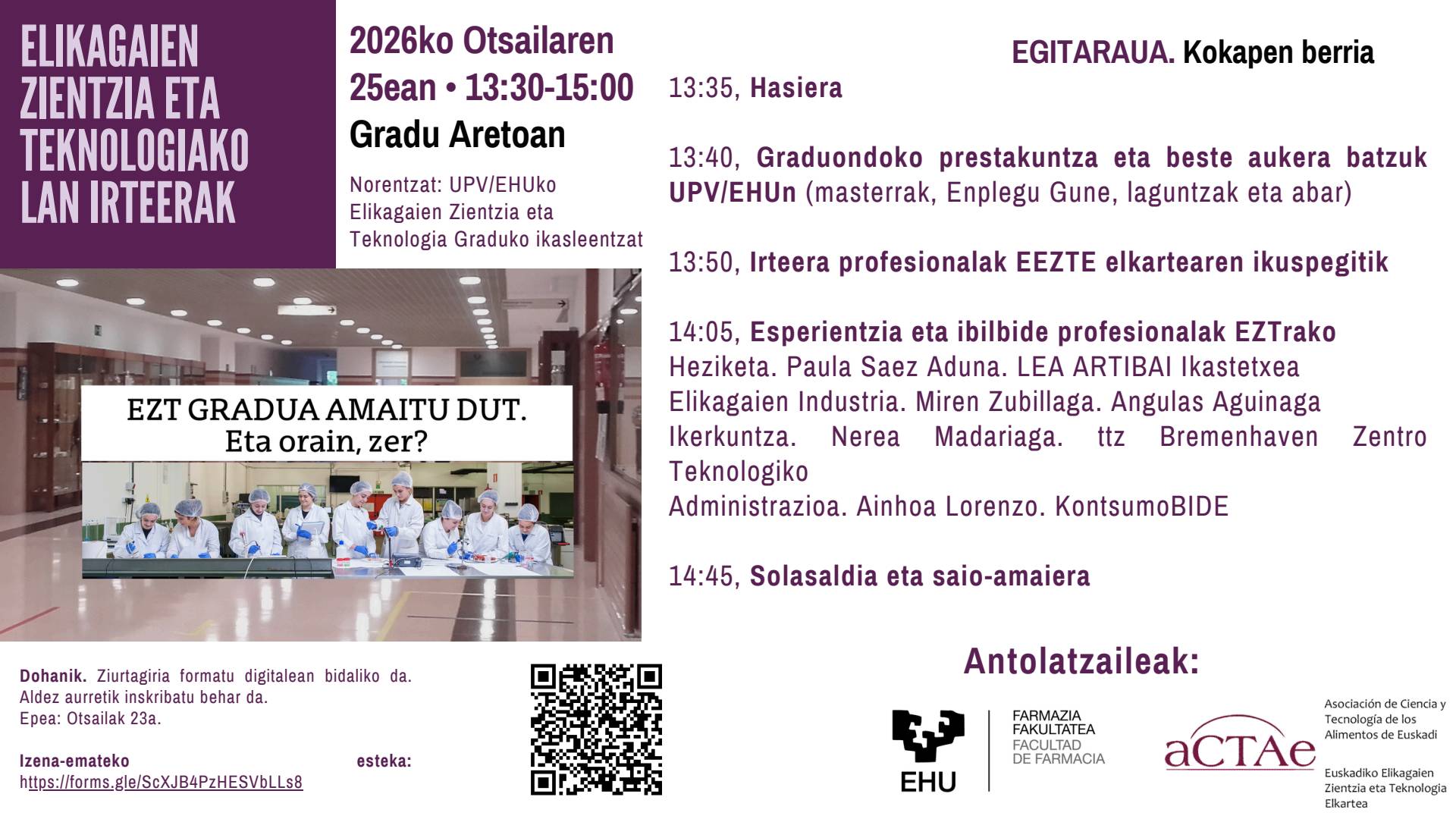 Asteazken Kulturala: Elikagaien Zientzia eta Teknologiako Graduko Irteera profesionalak