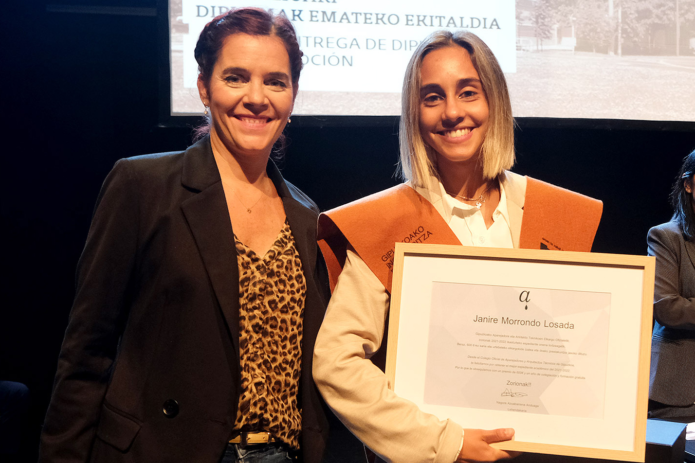 Janire Morrondok 2021-2022 ikasturtean graduatu zen Arkitektura Teknikoko Graduko espedienterik onenarekin.