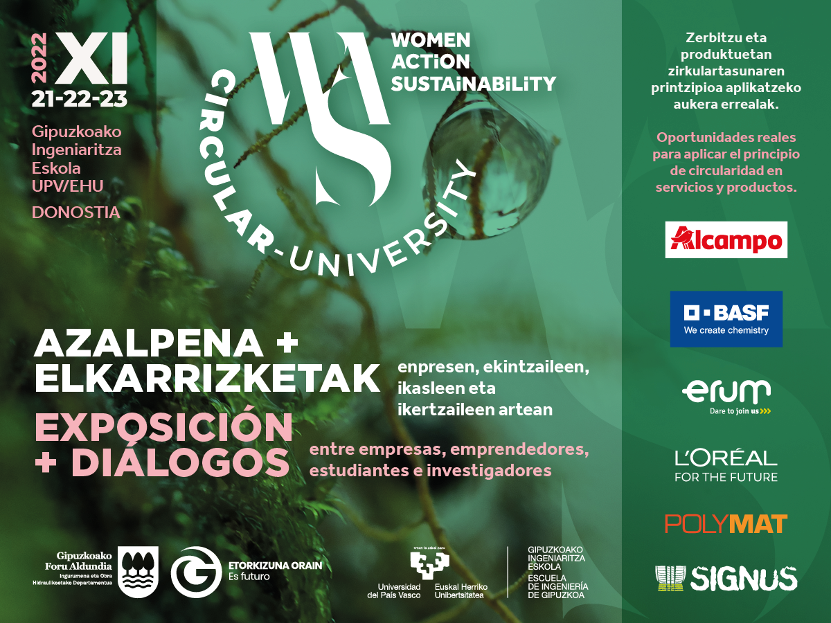 WASek (Woman Action Sustainability) Gipuzkoako Ingeniaritza Eskola aukeratuko du enpresen, ikertzaileen, agenteen eta gaur egun edo etorkizunean Ekonomia Zirkularraren benetako aukerekin lotutako erabakiak hartzeko ardura izango duten pertsona guztien arteko elkarrizketak sortzeko. Enpresen standak bisitatu eta Agora guneko elkarrizketetan parte har dezakezu.
