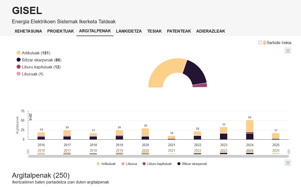 GISEL taldearen profilaren bidez, UPV/EHUko Ekoizpen Zientifikoko Atarian, taldeko kideek parte hartu duten nazioarteko aldizkarietako argitalpenen zerrenda eguneratura sartu daiteke. Egin klik hurrengo irudian portal horretara joateko.