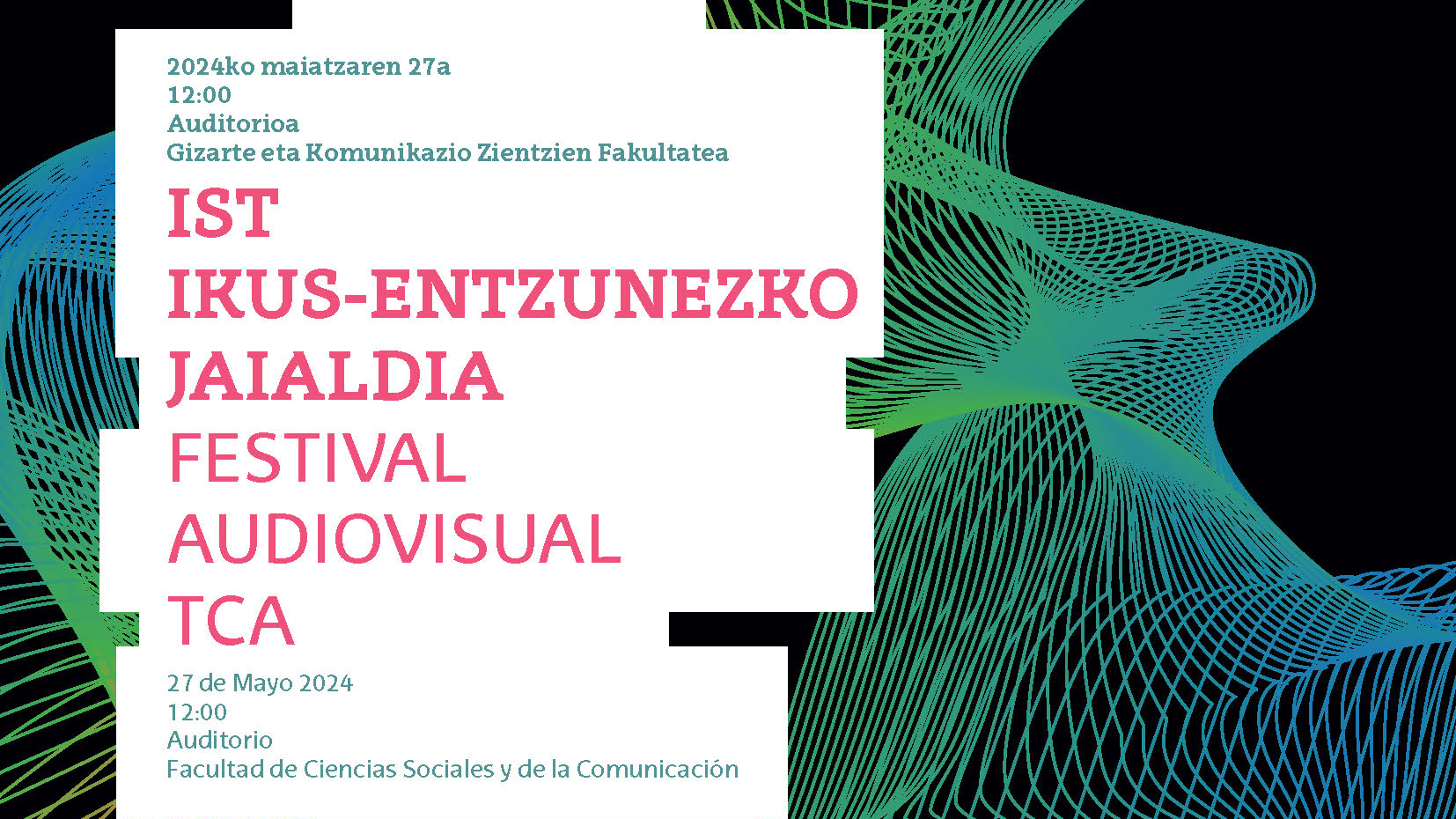 Urtero bezala, IST/TCA ikasgaiaren jaialdiaren unea iritsi da. Maiatzaren 27an, 12:00etan, fakultateko Auditorioan itxarongo zaituztegu, lehen mailako KAPUKO graduetako Ikus-entzunezko Sormen Teknikak ikasgaian egindako lan onenez gozatzeko.