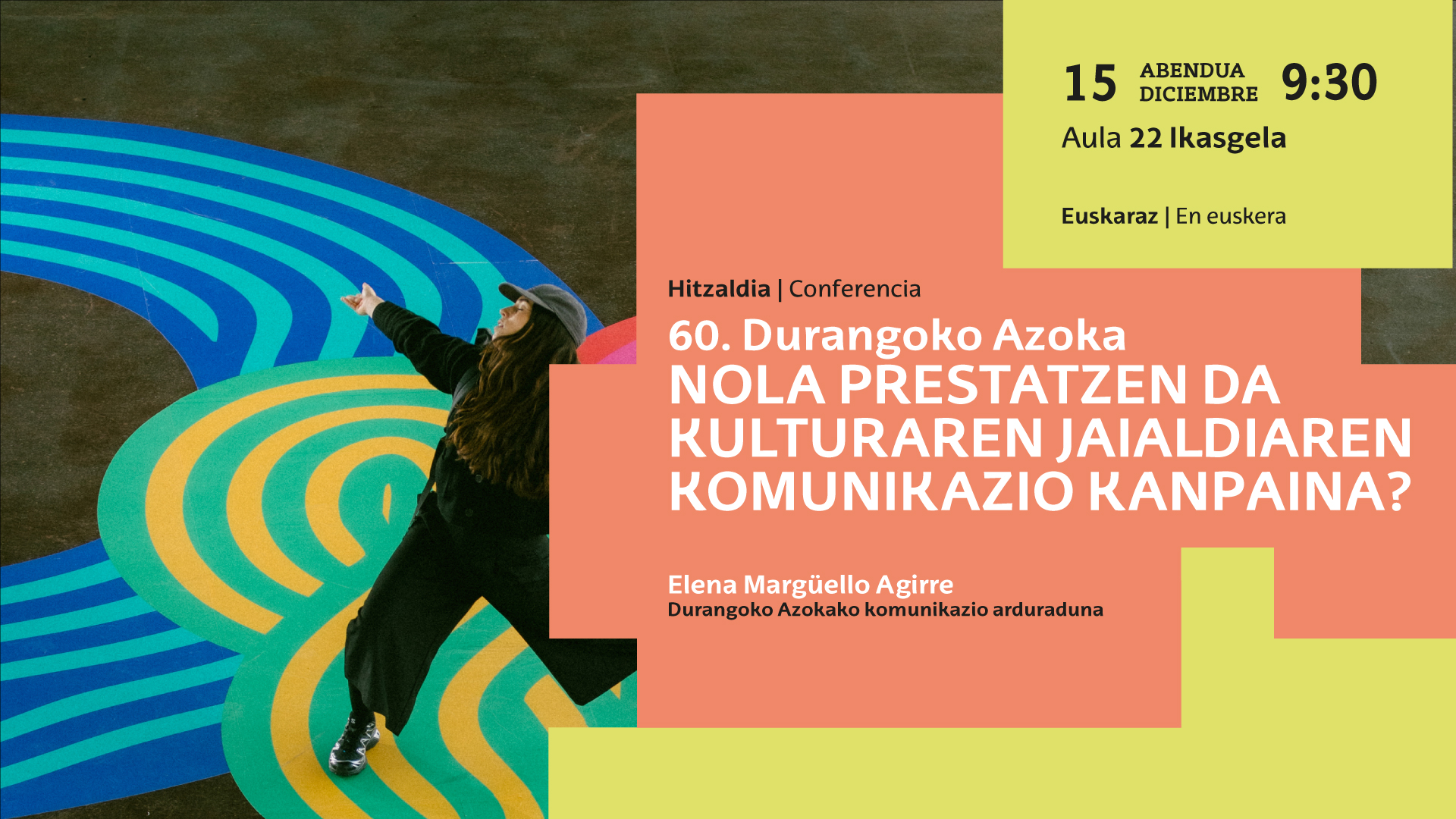Hitzaldia 60. Durangoko Azoka. Nola prestatzen da kulturaren jaialdiaren komunikazio kanpaina? Data 2025/12/15, 09:30 Facebook bidez partekatu - (Beste leiho bat zabalduko du) Bluesky bidez partekatu - (Beste leiho bat zabalduko du) Linkedin bidez partekatu - (Beste leiho bat zabalduko du) Whatsapp bidez partekatu - (Beste leiho bat zabalduko du) Telegram bidez partekatu - (Beste leiho bat zabalduko du) Bidali mezu elektroniko bidez - (Beste leiho bat zabalduko du) Esteka kopiatu - (Beste leiho bat zabalduko du) Elena Margüello Agirre, Durangoko Azokako komunikazio arduraduna ABENDUAK 15 09:30 22. ikasgela Euskaraz