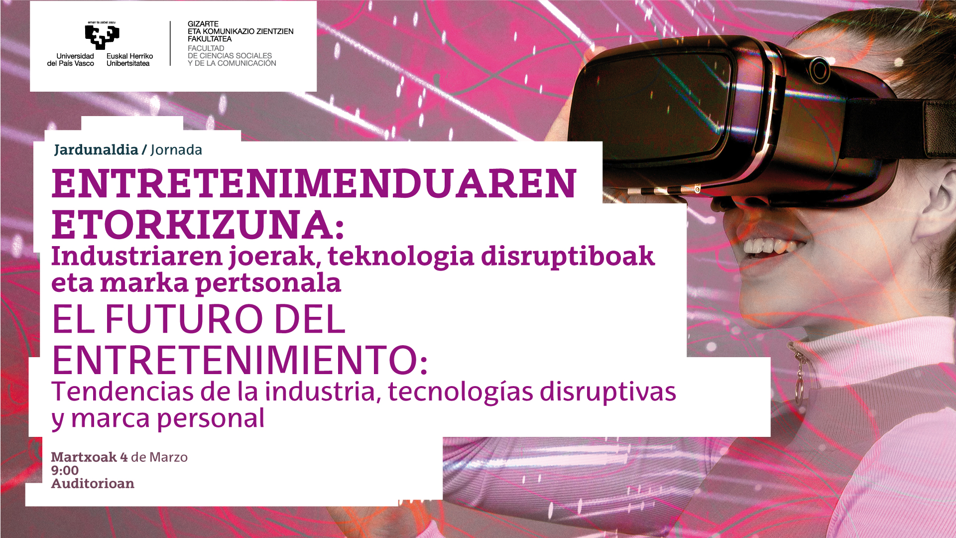 2024ko martxoaren 4an, goizeko 9:00etan, Gizarte Zientzien eta Komunikazioaren Fakultateko Auditorioan.