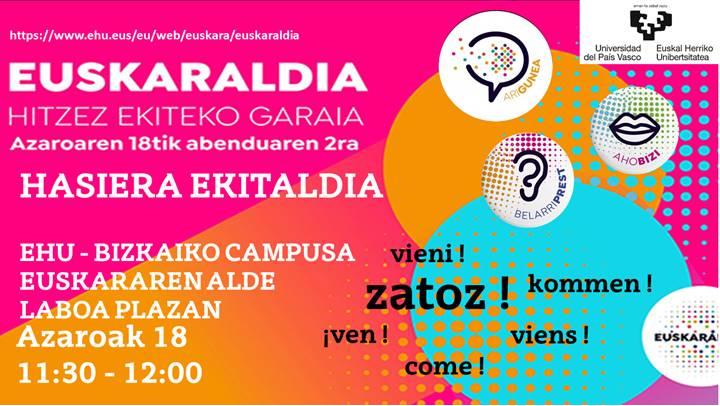 Laister Euskaraldiaren ospakizunean murgilduko gara. Izan ere, ostiralean, Azaroak 18, Euskaraldiaren hasiera ekitaldia izango dugu Mikel Laboa plazan, goizeko 11:00etan.