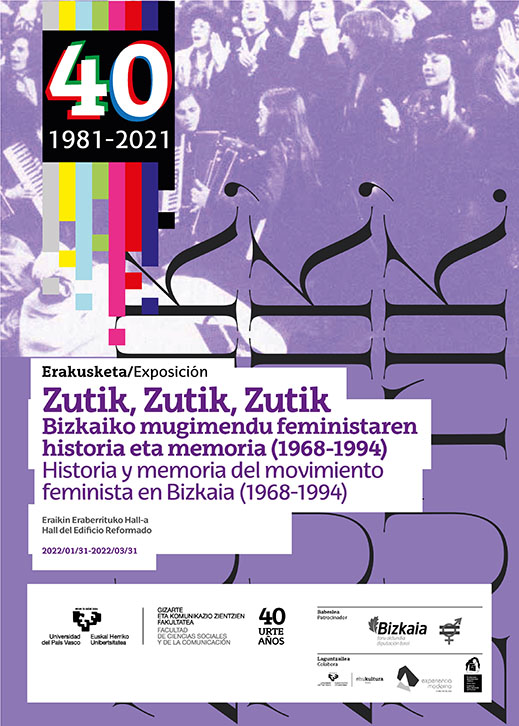 Zutik, Zutik, Zutik. Bizkaiko mugimendu feministaren historia eta memoria (1968-1994). Denbora tarte horretan zehar gure lurraldean berdintasunaren aldeko borrokari lotutako material grafiko nahiz idatzizko material askoren kopiak jasotzen dituen erakusketa.