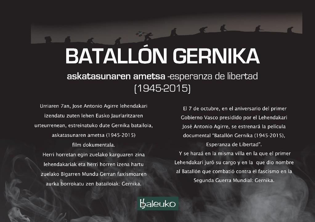 Urriaren 7an, Gernikan, Batailoiko Gudarien omenez egingo dituzten ekitaldietako bat da filmaren estreinaldia.