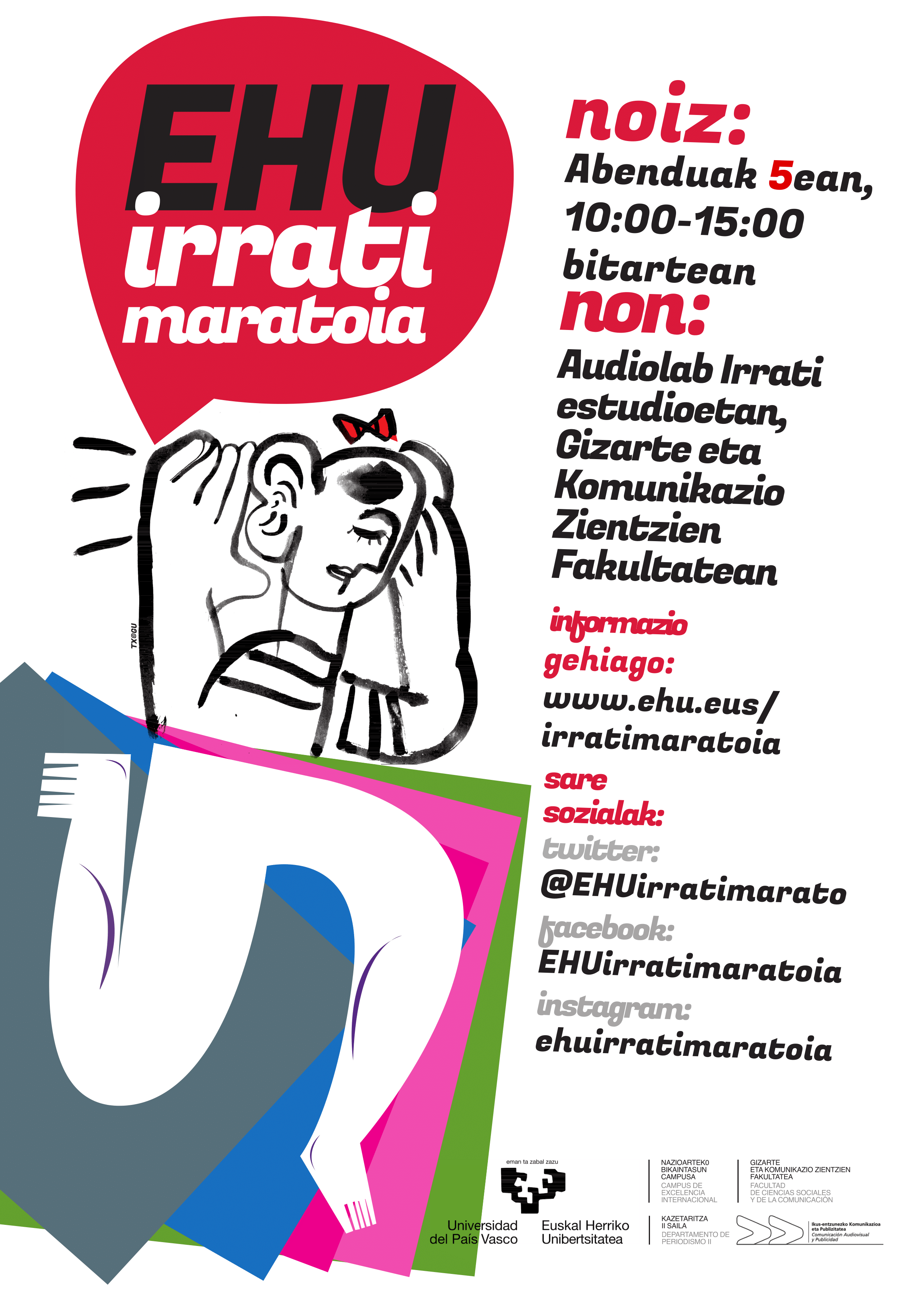 Irrati Maratoia abenduaren 5ean antolatuko da eta Euskal Herriko Unibertsitateko Kazetaritza graduko 70 bat ikaslek hartuko dute parte. Bost or-duz, ikasleek genero berdintasuna, euskara, desgaitasuna eta migrazioaren inguruko gaiak jorratuko dituzte.