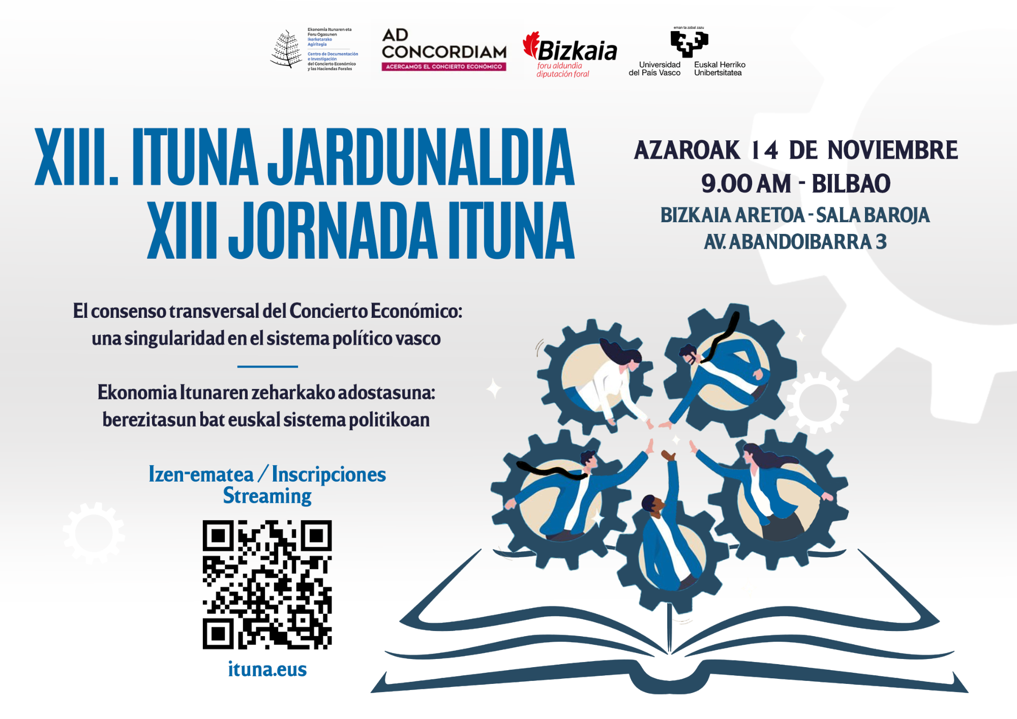 Ildo horretan, XIII. Ituna Jardunaldiaren helburua Ekonomia Itunaren gaineko adostasun transbertsal hori nola eraiki zen hausnartzea izango da, eta zein elementuren gainean legitimatzen den. Laburbilduz, galdera honi erantzuten saiatuko gara: benetan al da Ekonomia Ituna berezitasun eta adostasun transbertsal bat euskal sistema politikoan?