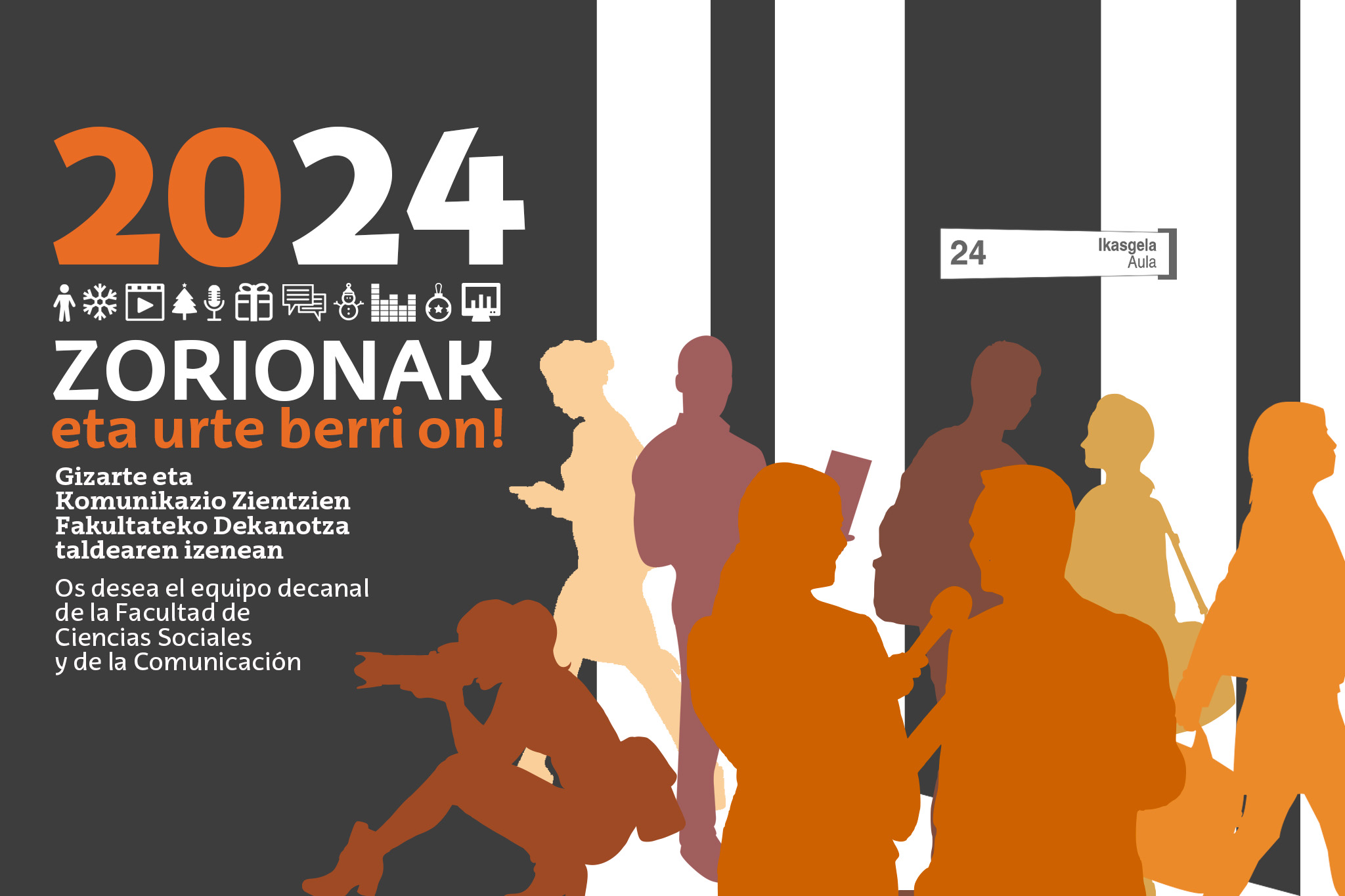 Zorionak! Lehenengo argitaratze data: 2023/12/19 Facebook bidez partekatu - (Beste leiho bat zabalduko du) Bluesky bidez partekatu - (Beste leiho bat zabalduko du) Linkedin bidez partekatu - (Beste leiho bat zabalduko du) Whatsapp bidez partekatu - (Beste leiho bat zabalduko du) Telegram bidez partekatu - (Beste leiho bat zabalduko du) Bidali mezu elektroniko bidez - (Beste leiho bat zabalduko du) Esteka kopiatu - (Beste leiho bat zabalduko du) Jai zoriontsuak eta urte berri on! Gizarte eta Komunikazio Zientzien Fakultateko Dekanotza taldearen izenean.