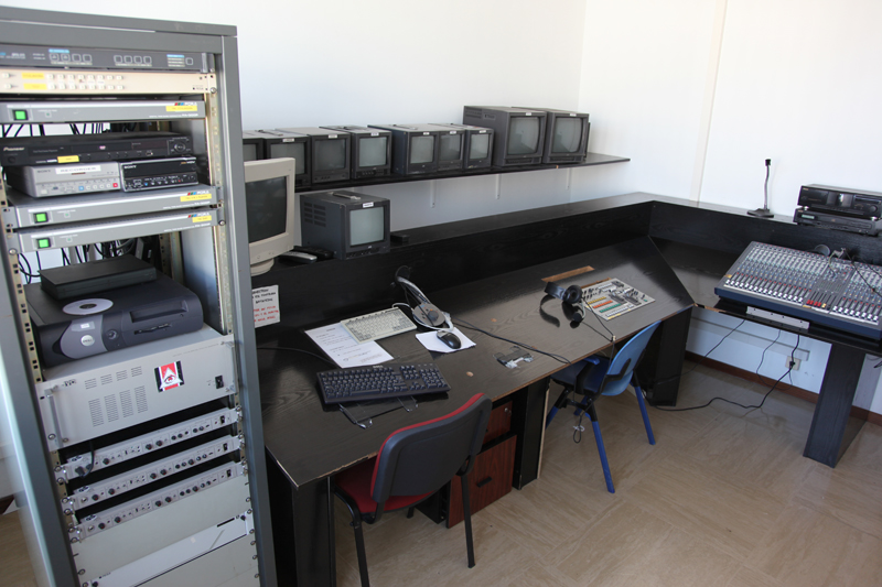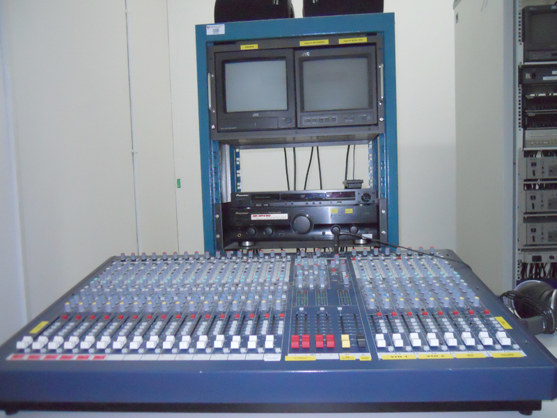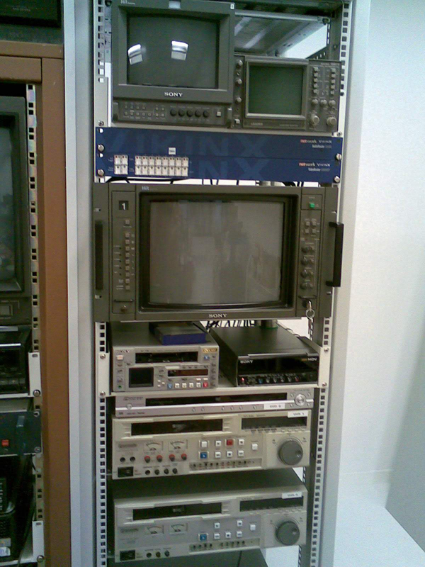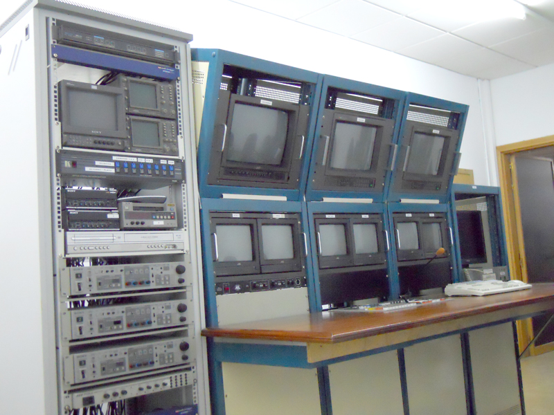 Platoa kontrolatzeko 1. gela: CCUak dituzten rack-ak, erreproduzitzaileak, kalibrazioa, sinkronismoak eta seinaleen monitorizazioa -