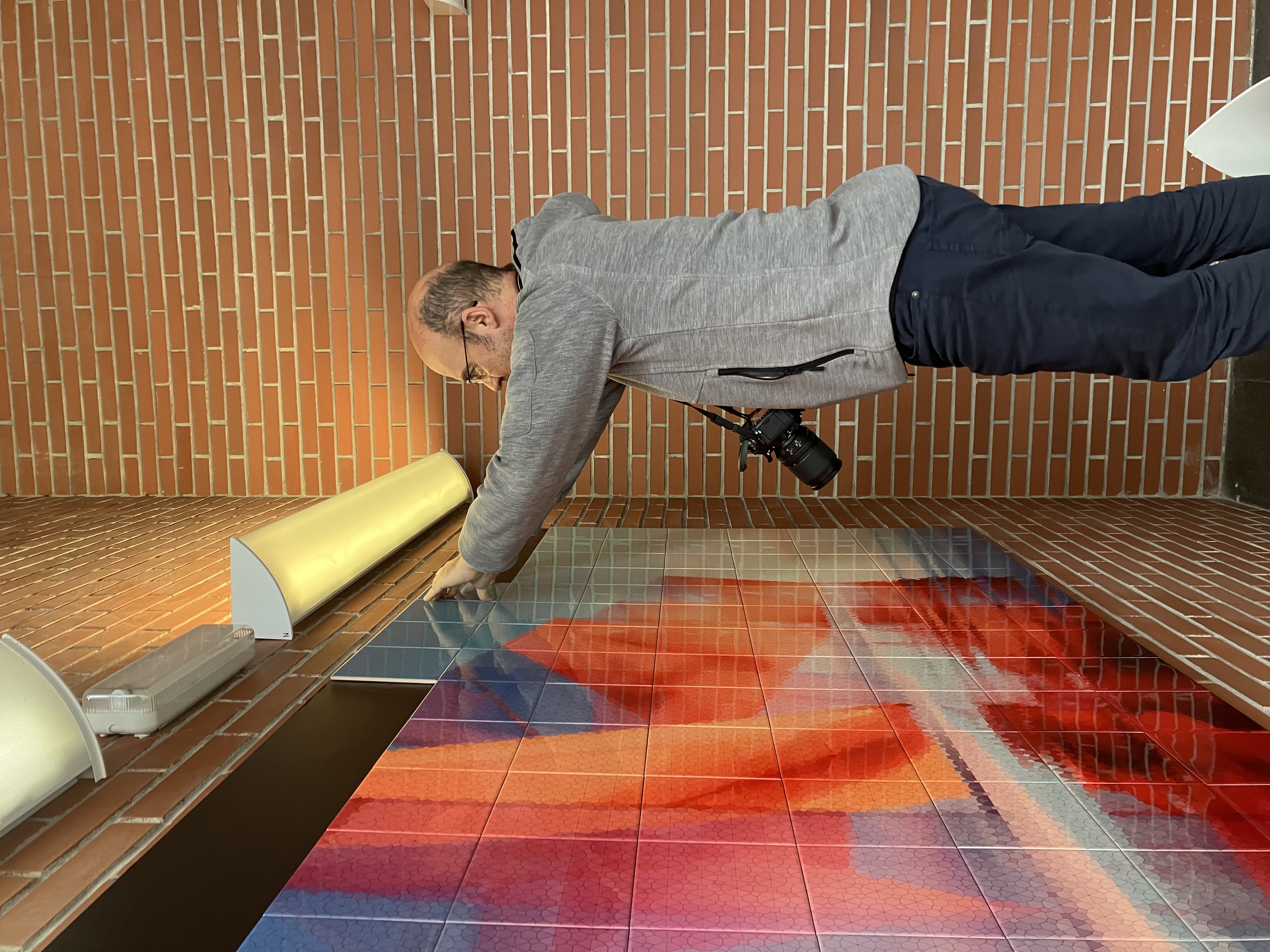 "Ceramic Drawing 2023.Calais" zeramikazko euskarri tradizionala eta sublimazio digitalaren prozesu modernoa uztartzen dituen artelana da. Prozesu garaikidea da, eta kolorezko koloratzailea transferentzia-paper batean jartzearen lehen urratsa da. Ondoren, transferentzia-paper honen tinta koloratzailea onartzeko bereziki tratatua izan den fitxa batera eramaten da. Metodo honek kolore biziak dituzten fitxak sortzen ditu. Artikulu honetan giza garunak tradizio artistiko desberdinak uztartzen dituen artea nola prozesatu, bizi eta interpretatzen duen aztertzen dugu. Artelan honek kristalezko eta metalezko egitura minimalista bat irudikatzen du itsasoaren ondoan. Erromako mosaikoen irudikapen tradizioa eta mosaiko islamikoen estetika geometrikoa fusionatzen ditu. Erromako mosaikoaren tradizioa irudikapen irudikapenean eta piktorikoetan zentratzen da batez ere. Xehetasunetan hazten da, kolorean eta forman oinarritutako teselazioa zehatz-mehatz aukeratuta, eskuak, buruak eta beste irudi nabariak bezalako bizitza errealeko objektuak imitatzeko. Metodo honek izaera bereizgarria ematen dio artelanari, behatzaileei forma eta forma ezagunekin konektatzeko aukera ematen die. Kontraste nabarmenean, mosaiko islamiar tradizioak ez du giza edo animalien formak erretratatzeko. Horren ordez, eredu geometriko abstraktuetan oinarritzen da. Forma, lerro eta koloreen jokoan jartzen da arreta, hausnarketa eta liluragarria den esperientzia estetiko bat sortuz, behatzailearen adimena eredu horien mugen barruan ibiltzen utziz.