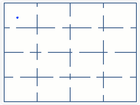 The numerical values of the forward motion, 4 steps, and the random turns, +/- 30 degrees, were determined by trial and error.