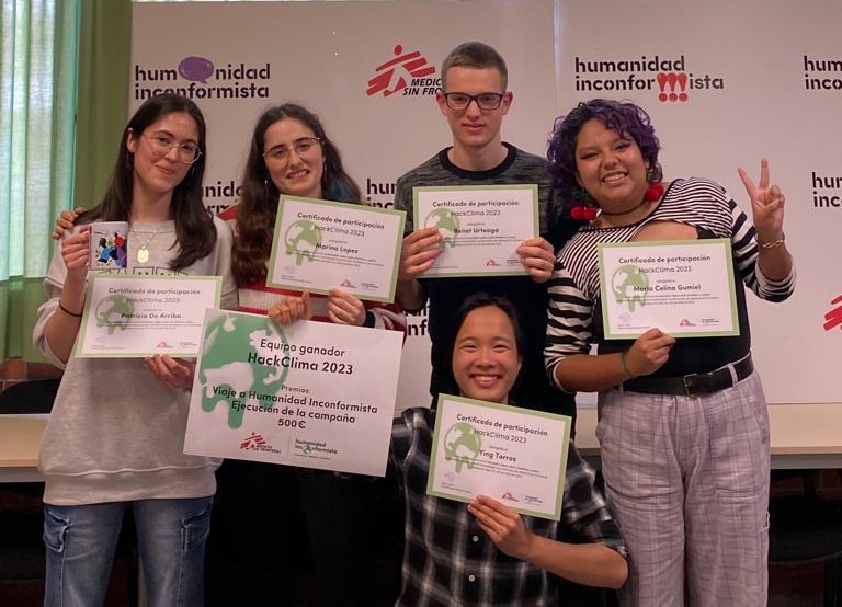 Mugarik Gabeko Medikuen Gizateria Inkonformista proiektuaren I. Hackatoia irabazi duen taldea, Bilboko Ekonomia eta Enpresa Fakultatetik (Sarriko), Patricia De Arriba, Maria Celina Gumiel, Marina Lopez, Ying Torres eta Beñat Urteagak osatutako taldea izan da.